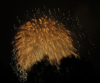 I'm sorry; this post is not about nature.  Since it is the Fourth of July, and I just watched an amazing fireworks show from my driveway, I wanted to post some photos of it.  A few startled birds flew out of the trees, but they were alright.  My dog did the worst.  He's terrified of fireworks.  My cats didn't care at all.