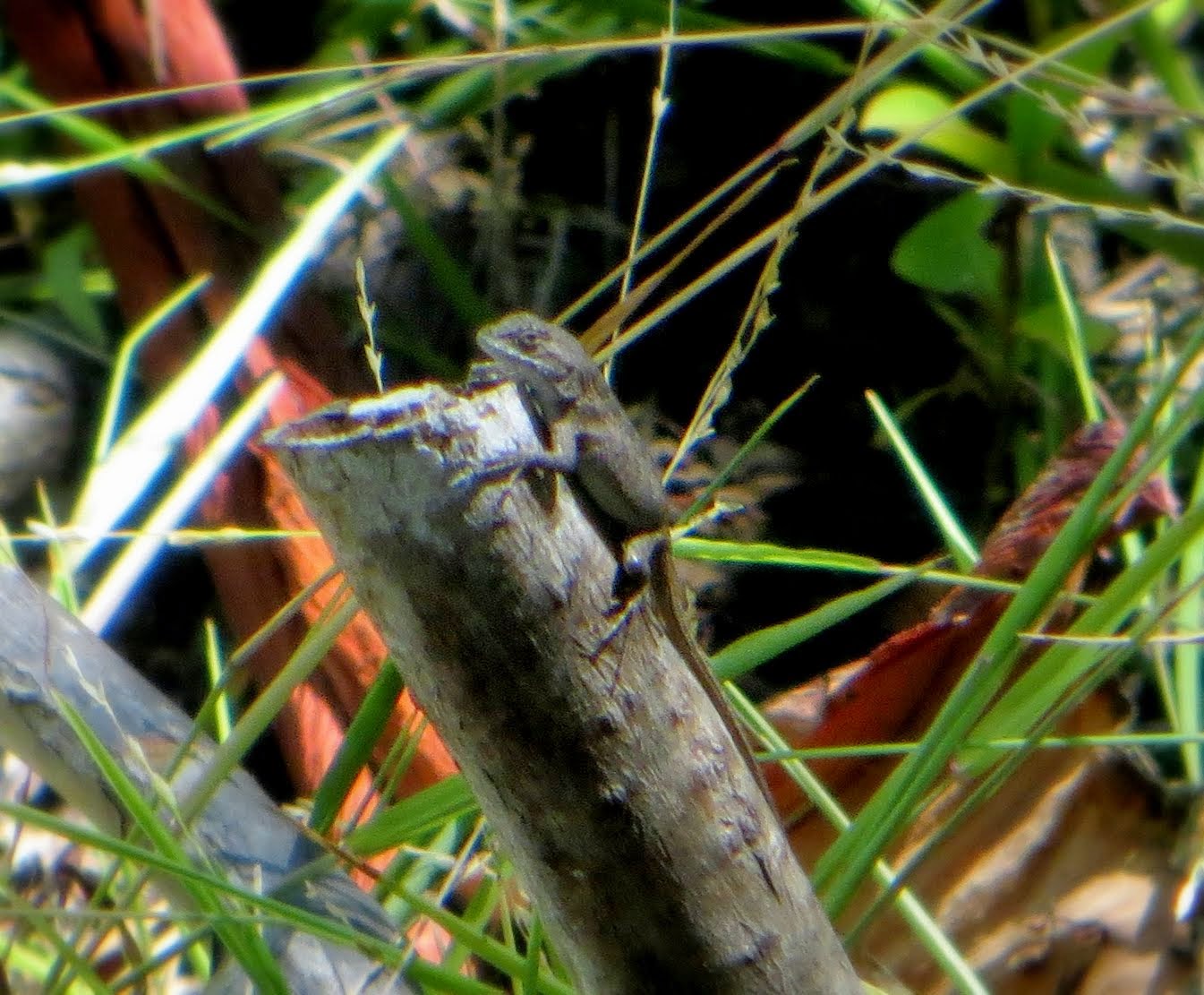 There are many young lizards around; mostly western fence lizards. The young ones are very tiny. Including the tail, many of them are about the length my finger. Below is one of the young western fence lizards.