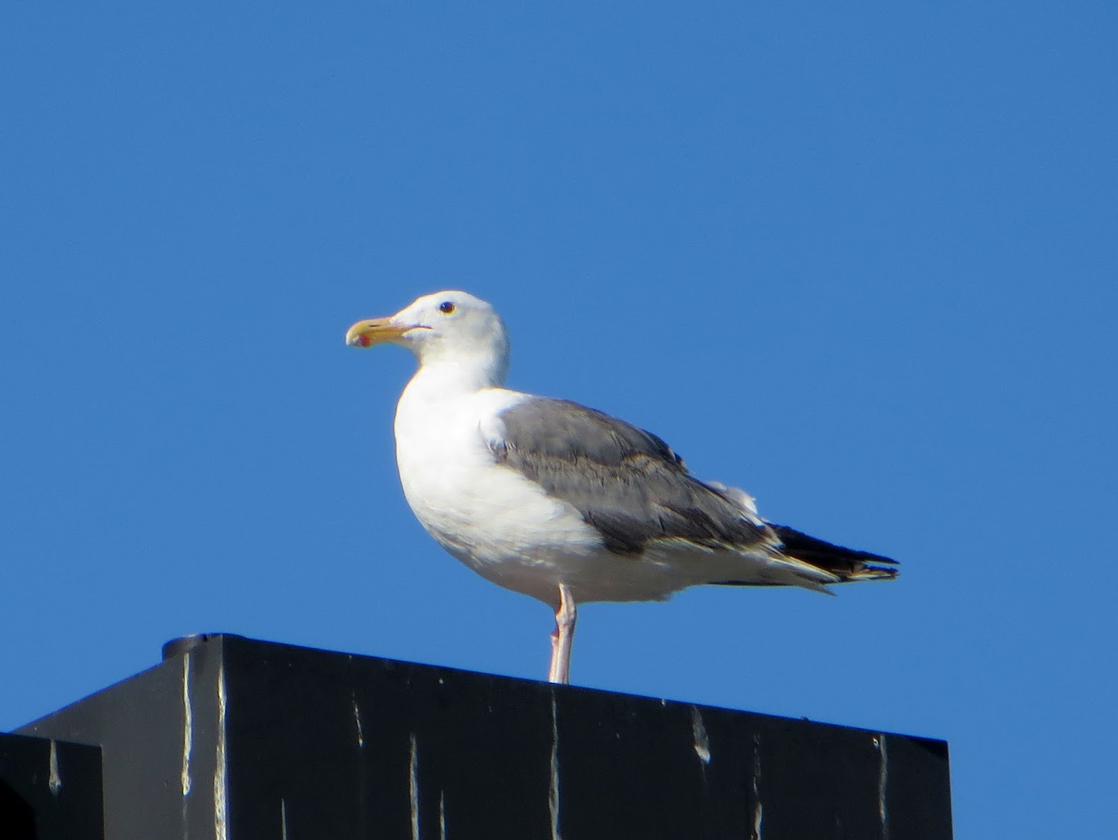 I also saw a couple of little flycatchers on Saturday, the Pacific-Slope Flycatcher and the Western Wood-Pewee. Because of their similar size and shape, they can be confused at a distance or in bad lighting. In good lighting, the Pacific-Slope Flycatcher is clearly very yellow, while the Western Wood-Pewee is grayish-brown (it does have a small bit of yellowish-gray on its belly). Below are two photos. The first is the Pacific-slope Flycatcher, and the second is the Western Wood-Pewee.
