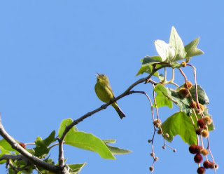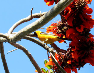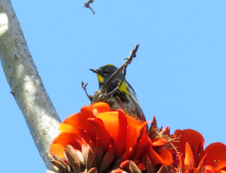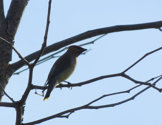 The orioles have started to arrive, though many of the winter birds are still here (though they'll probably start leaving sometime soon). We saw large flocks of Cedar Waxwings throughout the day. They were singing loudly, and some were acting like flycatchers - flying out, hovering a little, then returning to their perch. We also saw a few Hooded Orioles; two pairs. Below are three photos of Cedar Waxwings, and two photos of a couple of male Hooded Orioles.