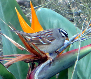 In my backyard, I saw white-crowned sparrows.  Below is a photo of one.