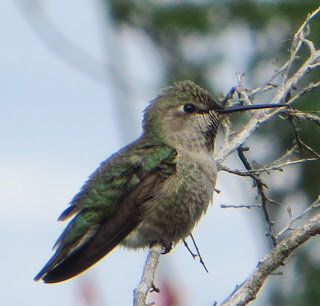 Below is female Anna's hummingbird that sat right in front of me.