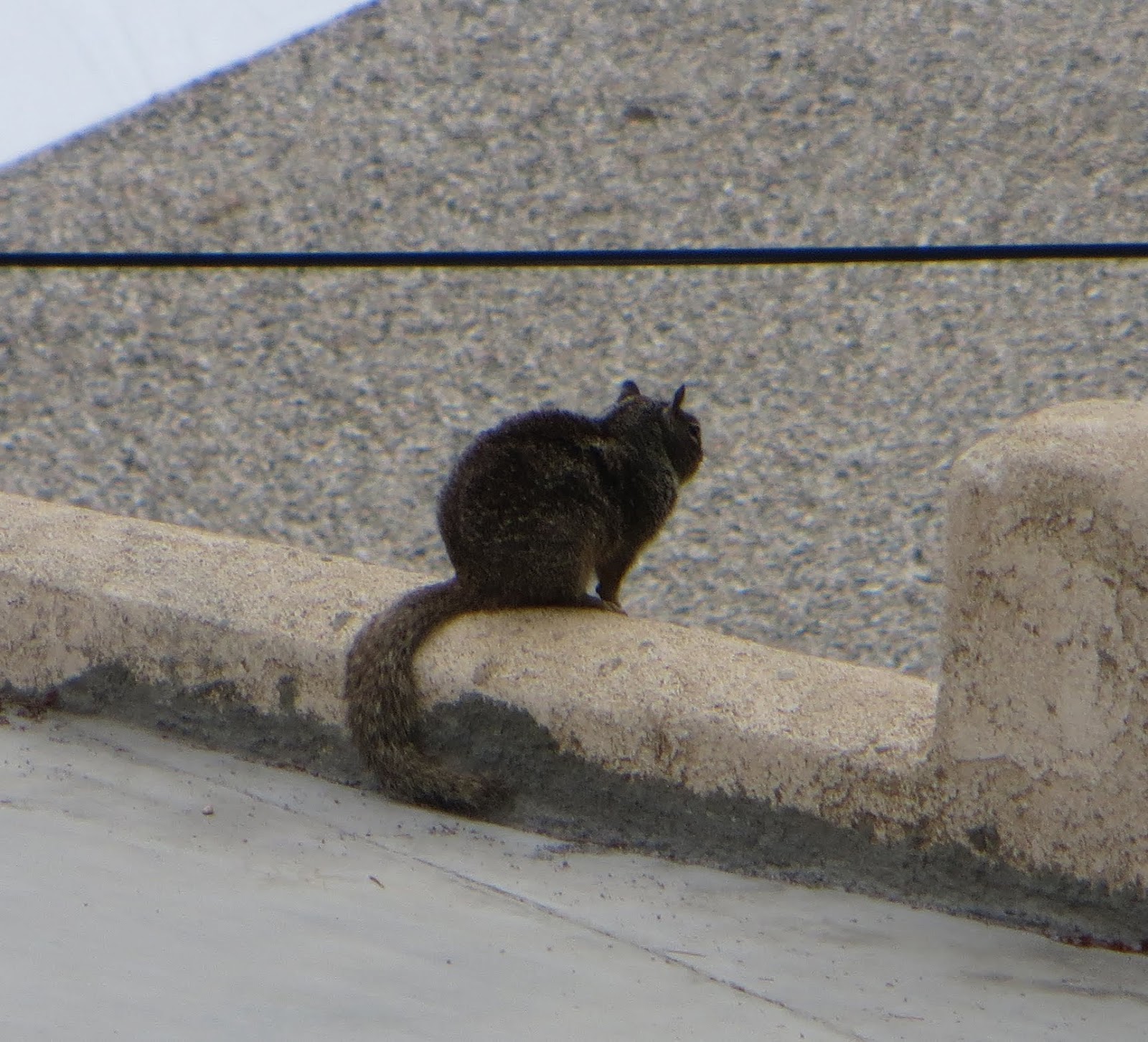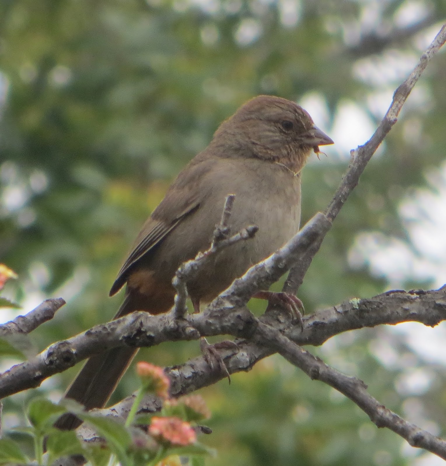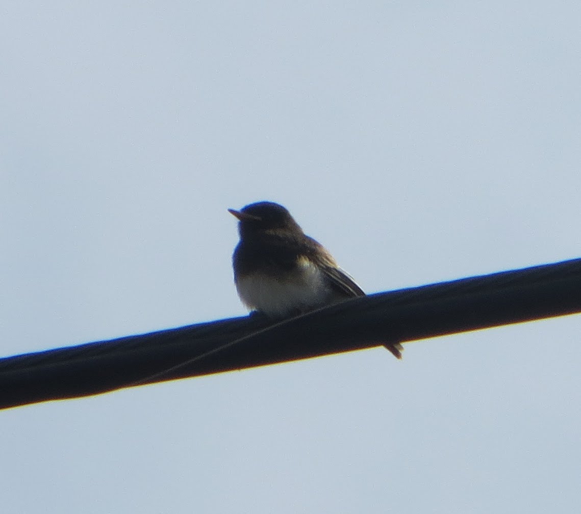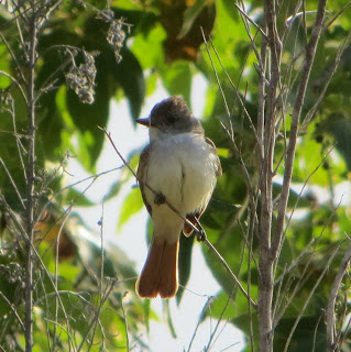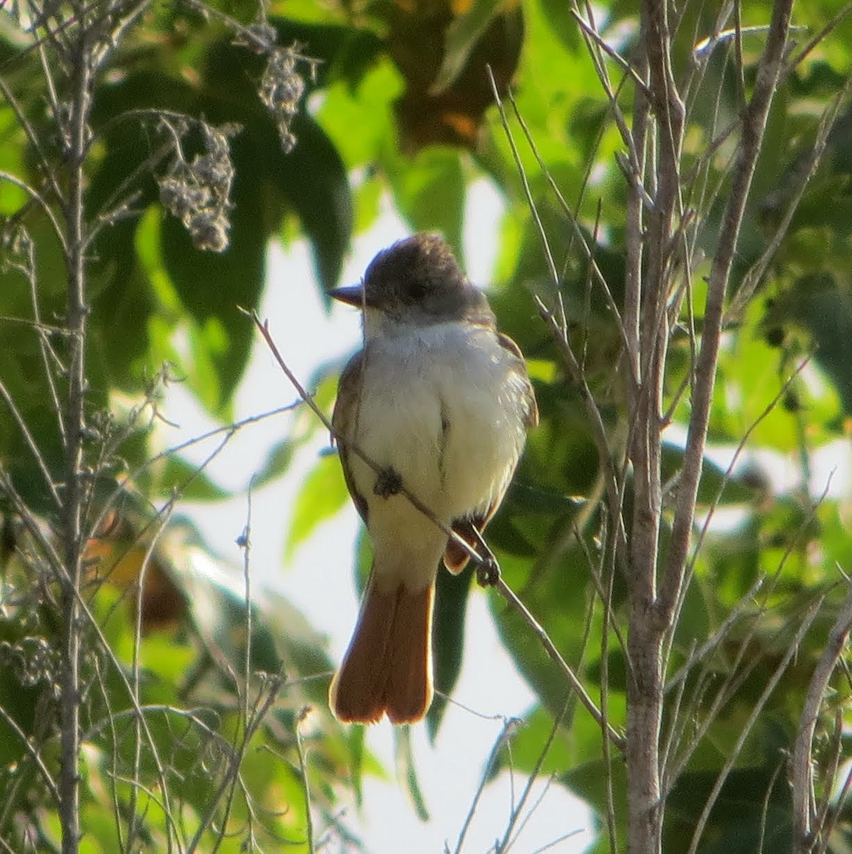 A bird we could count was an ash-throated flycatcher. Ash-throated flycatchers are found in the southwestern United States in the summer and winter south into Mexico and Central America. They are fairly large flycatchers with gray heads, chests, and backs, yellow bellies, and reddish-brown tails and wingtips. They are common in brushy areas, though are sometimes shy. This was the closest I ever got to one and it only stayed for several seconds. Below is a photo of it.