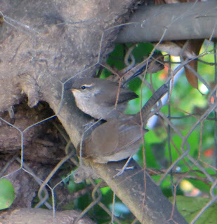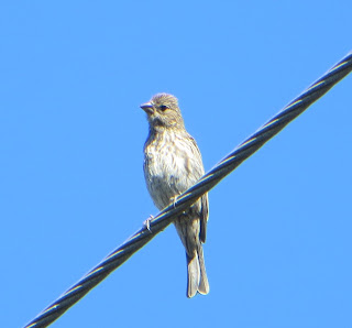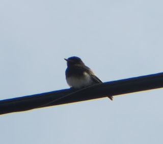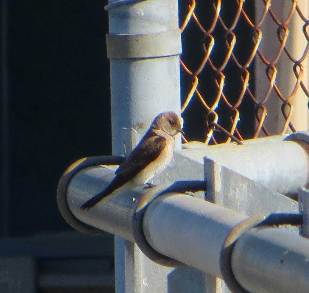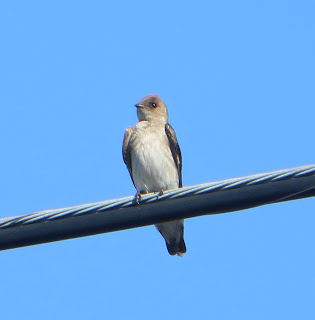 A somewhat unusual bird (at least for the lagoon), was a warbling vireo. They are found throughout the United States (except for the southeast) and southern Canada in the summer. They winter in Central America. They are small, gray birds with white eyebrows, darker gray eye-lines, paler chests and yellowish sides. They have warbling songs, as their name suggests. Below is a photo of the warbling vireo.