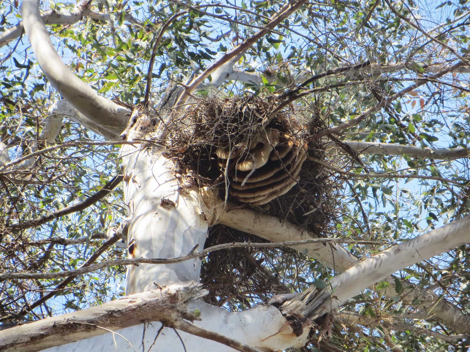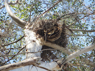 There was another unusual sight in the same little area. There was a very large, rather messy-looking nest in a tree that had a bracket fungus growing on the bottom of it. The fungus was very large, and before, I'd only seen them on tree trunks. Below is the nest and the fungus.