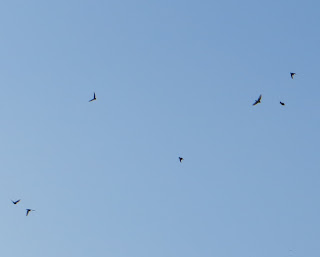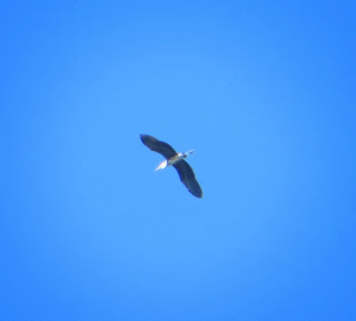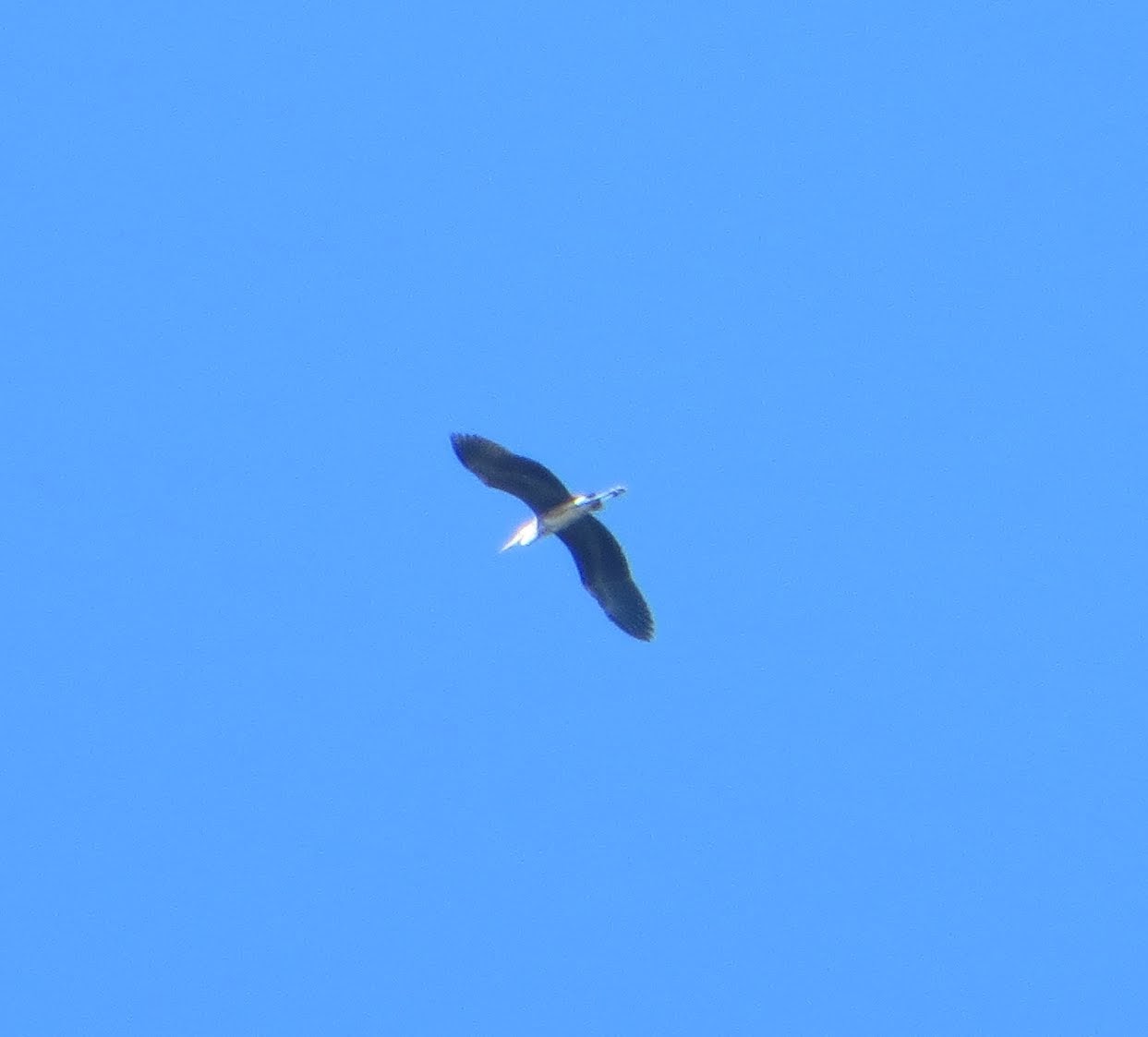 There was a strange sight at the lagoon today. There was a great blue heron soaring high in the air. Great blue herons seldom fly high up, and I've never heard of them soaring. However, the one I saw today was circling around in the sky as if it were a hawk. It was very odd. Below is a photo of the heron.