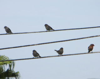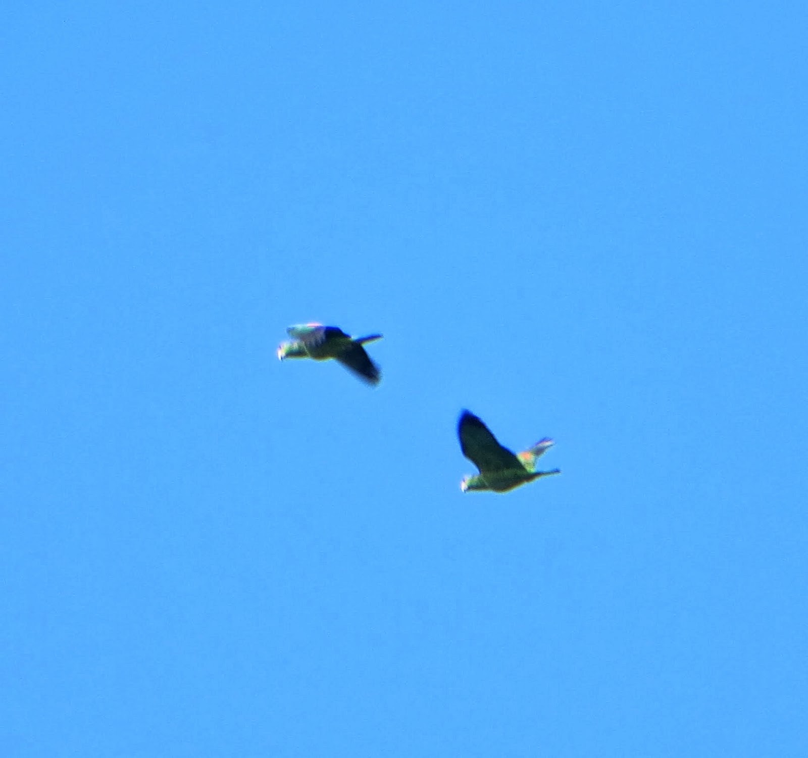 There were also a couple of birds that we couldn't count on our list. They were two parrots that flew over the nature center. Below is a photo of the parrots. I am not very good with parrots, so I do not know their species. Whatever they are, there must be a small population of them because I've seen the same kind a few times around the lagoon.