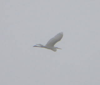 There were many great blue herons flying around. There were at least eight, but I wasn't able to get a good photo of one. It was very unusual, since great blue herons are normally solitary. Perhaps they were families. There were not many egrets around, but I did take a photo of one great egret that flew over. Below is the egret.