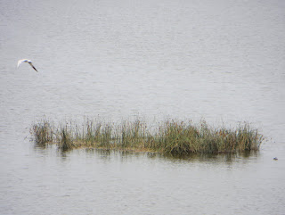 For some reason, the lagoon's water level is rising.  It might be because of rising sea levels, but I'm not sure.  Whatever it is, it's affecting the birds.  Birds such as stilts, avocets, rails, bitterns, and small herons like mud and shallow water.  Now, those areas and birds are disappearing from the lagoon.  I've included four photos to show this.  The first two are of an island that's disappearing.  Birds and turtles used to rest there, but now it's entirely gone except for parts of the reeds (in the second photo, the bird on the left is a Caspian tern; the small dot on the right is a western grebe).  The second two photos are of an area beside the road where there used to be soras and moorhens, and the ground could be seen in the shallow water.  Now it's all fairly deep water.  A moorhen and its baby are shown walking in the first photo.  Two adults are swimming in the second.  I haven't seen soras in years and moorhens have recently started to disappear.