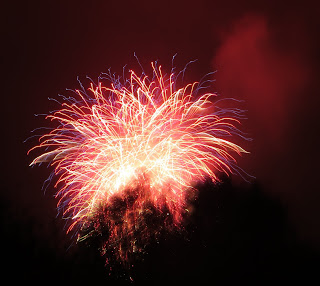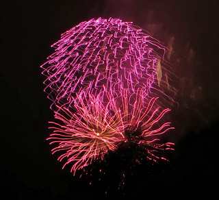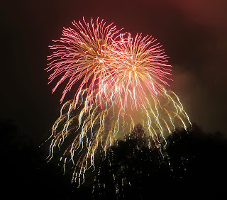 I'm sorry; this post is not about nature. Since it is the Fourth of July, and I just watched an amazing fireworks show from my driveway, I wanted to post some photos of it. A few startled birds flew out of the trees, but they were alright. My dog did the worst. He's terrified of fireworks. My cats didn't care at all.