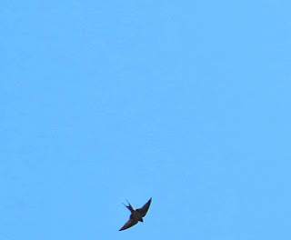 The only birds we saw at Mount St. Helens were a few ravens, swallows, and a kingbird. The barn swallow was the most common swallow there. They are found throughout Canada, the United States, and Mexico in the summer. They winter in South America. Their most distinguishing feature is their long forked tails. They are dark blue on their heads, backs, and tails. They have orange faces and are golden or light yellow below. They have thin pointy wings. As their name suggest, they often make their nests on barns or other man-made structures. Below is a barn swallow.