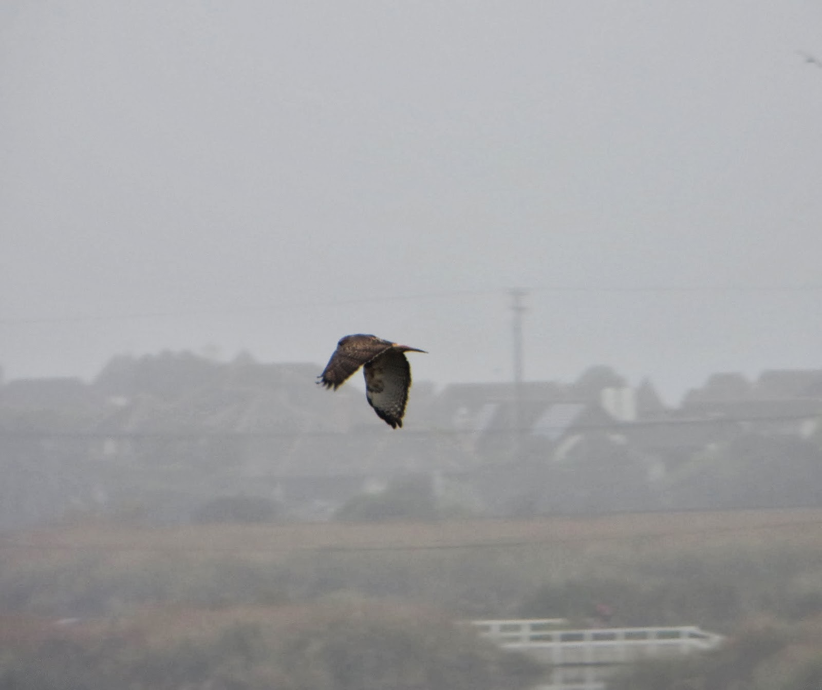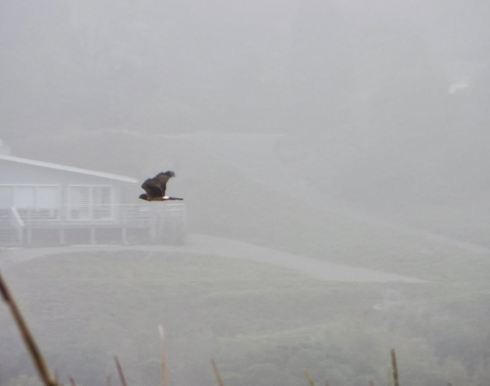 There was a female northern harrier flying back and forth through the fog. Below is a photo of it.
