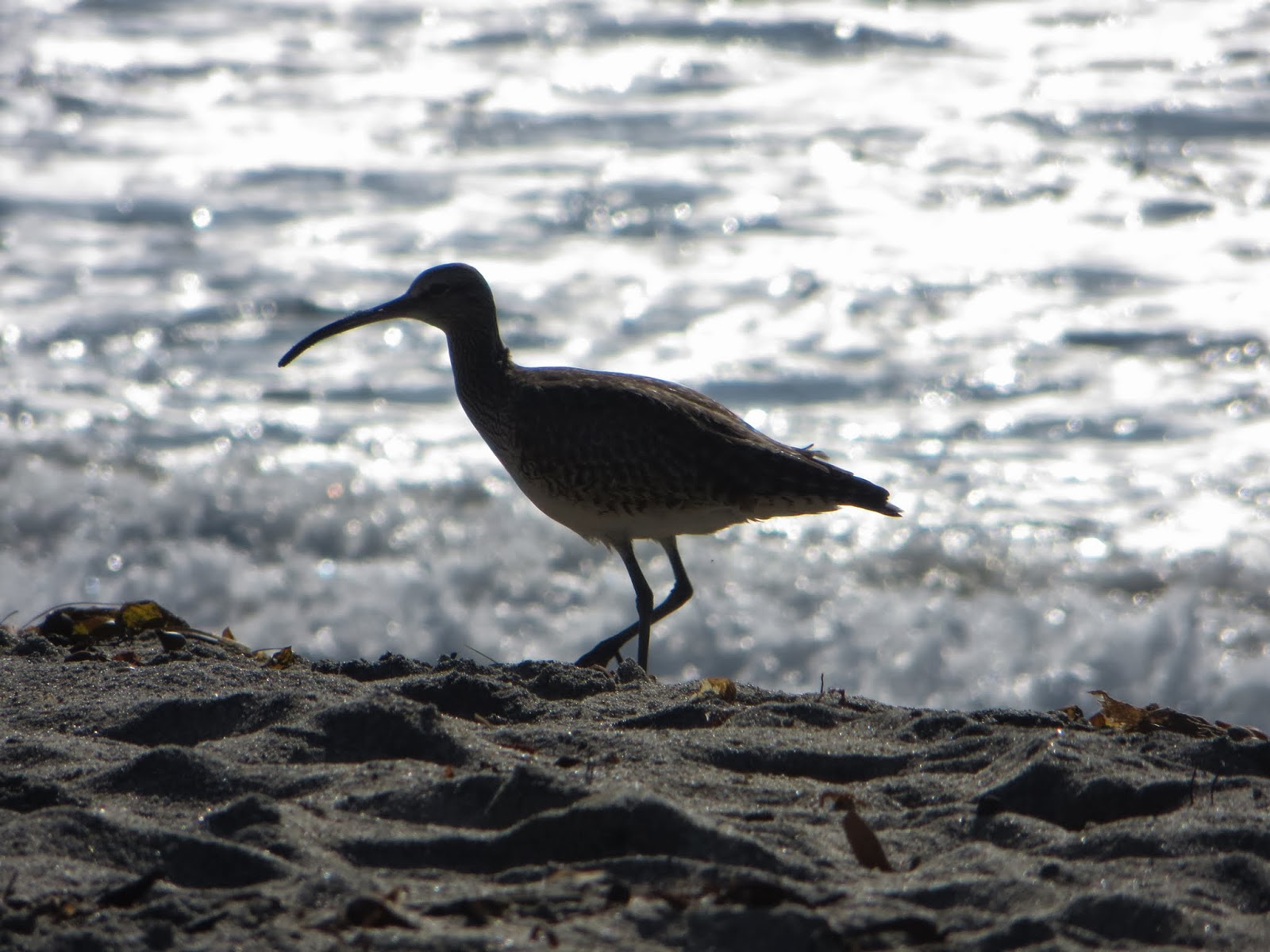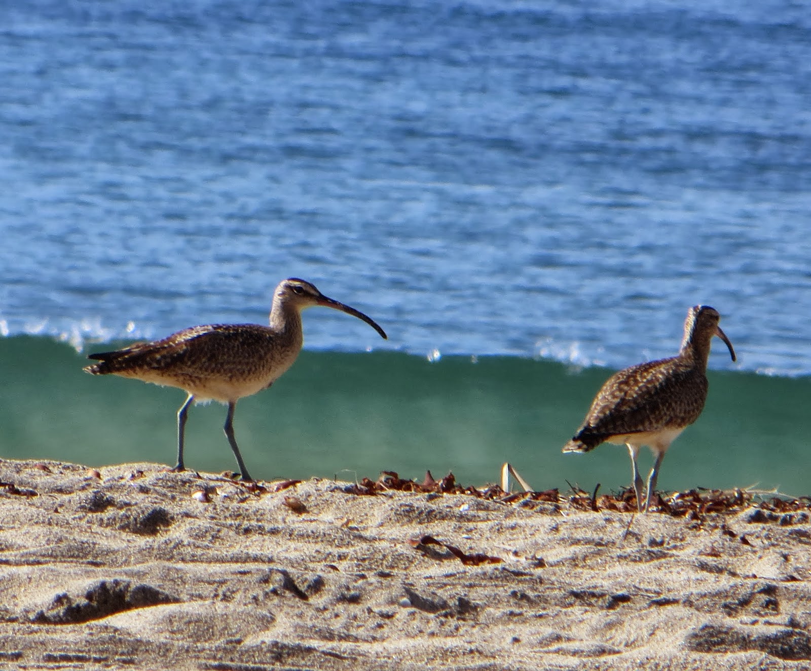 There were only a few whimbrels.  There were perhaps two to four of them. Below are two of them with the waves behind them.