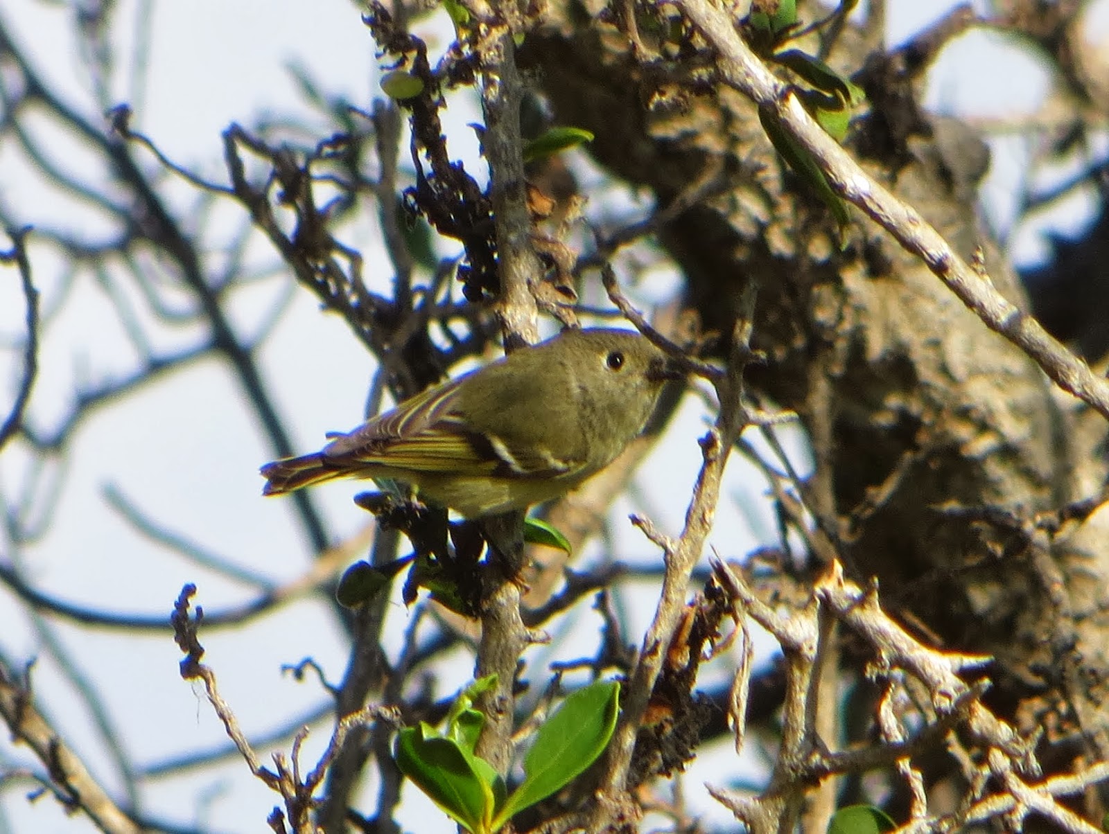 There was a little ruby-crowned kinglet hopping around in a tree.  It came right out in the open, though it moved much to quickly to take many photos.  Below is the one clear photo I took of it.