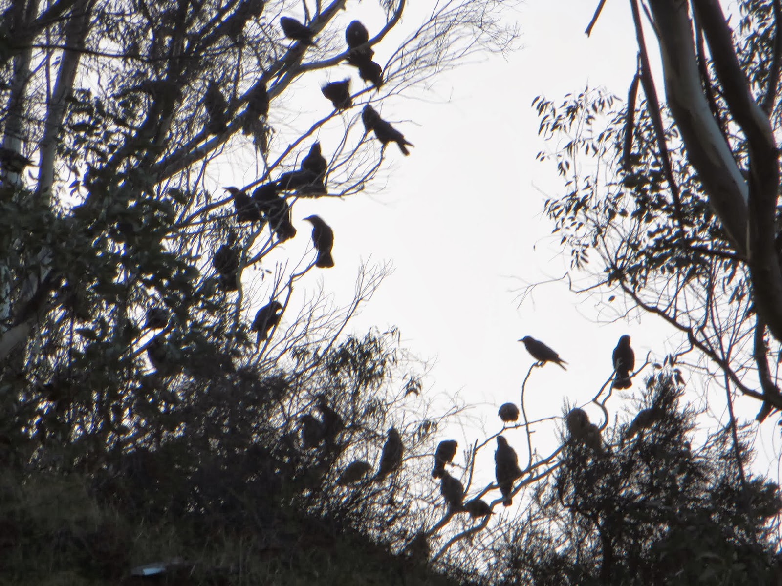 We didn't see many birds there, though we saw about a hundred crows. They sat in the trees and were very, very noisy. They didn't like us being there and followed us, trying to drive us away. Below is a photo of part of the group.