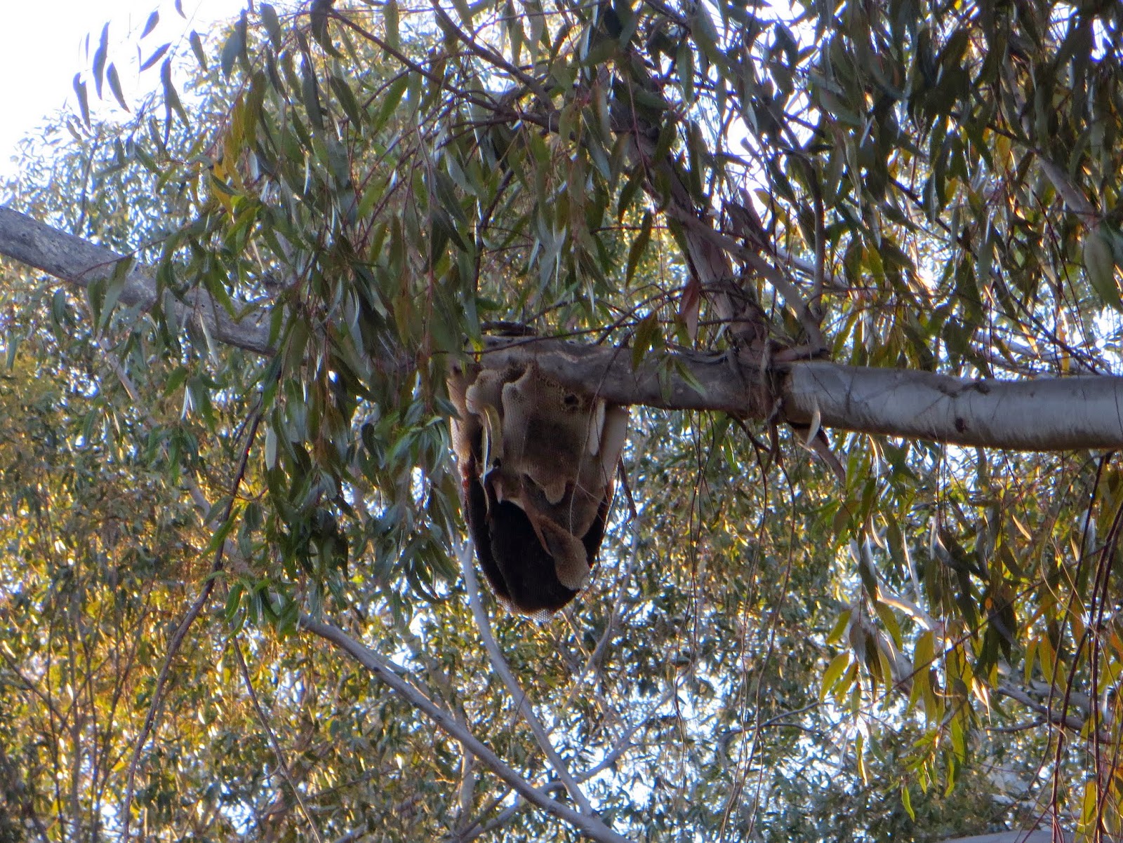 Before heading over to the Nature Center, we also stopped by Hosp Grove Park. We saw Hermit Thrushes, a House Wren, a Ruby-crowned Kinglet, and a Green Heron there. We also found a beehive. The views were very beautiful in the eucalyptus grove in the early morning light. Below are three views of the park and one of the beehive.