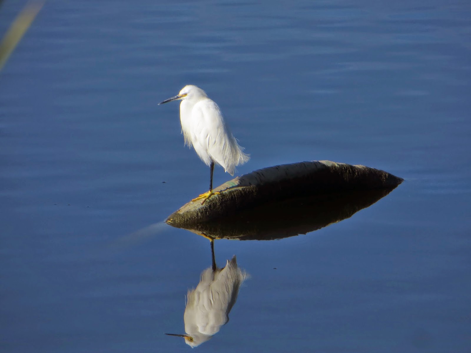 There were a few Snowy Egrets around.  Below is one of them sitting on what is probably a pipe in the lagoon.