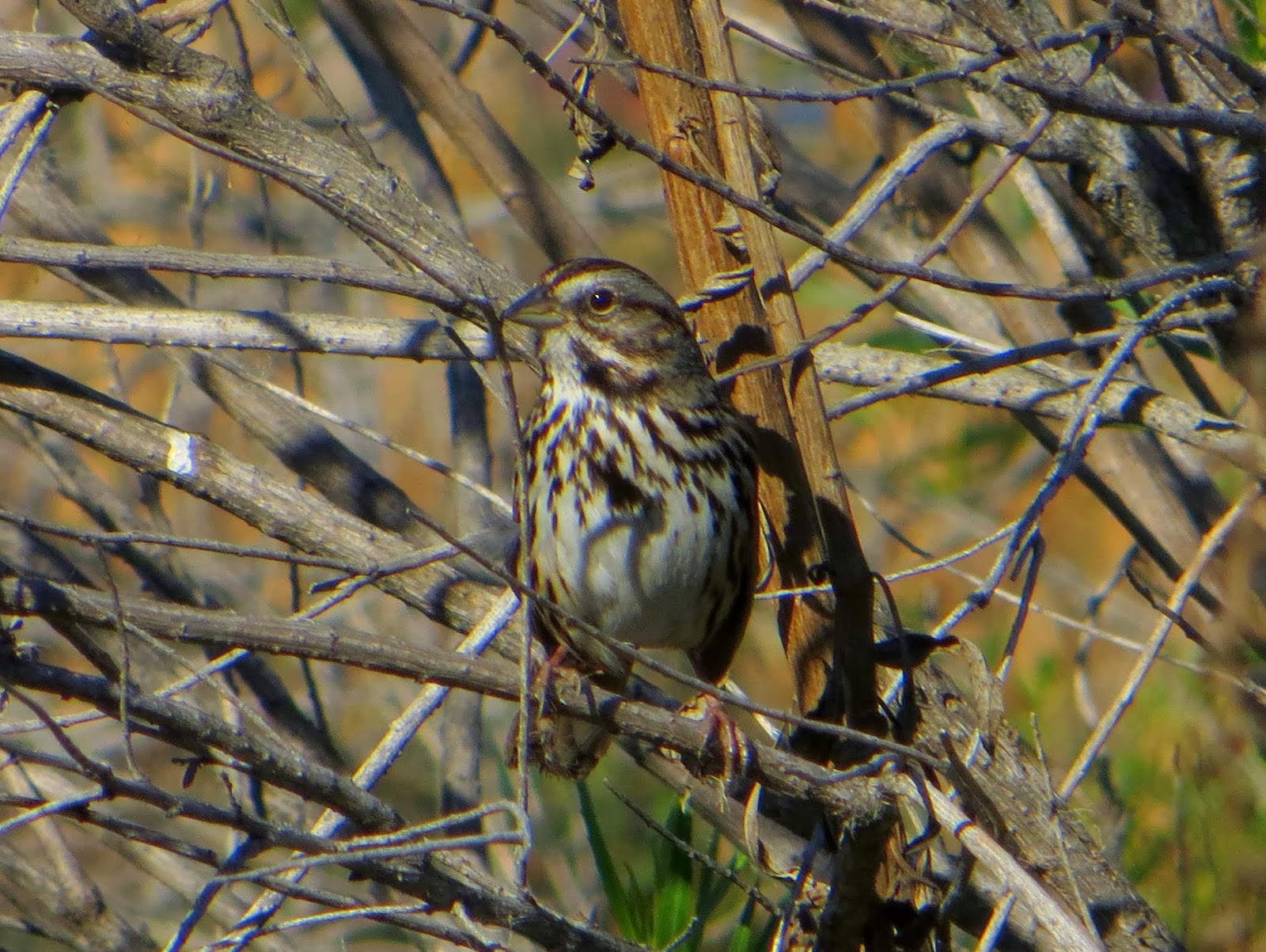 There were quite a few song sparrows around. A few of them were singing. Below is one of them in a bush.
