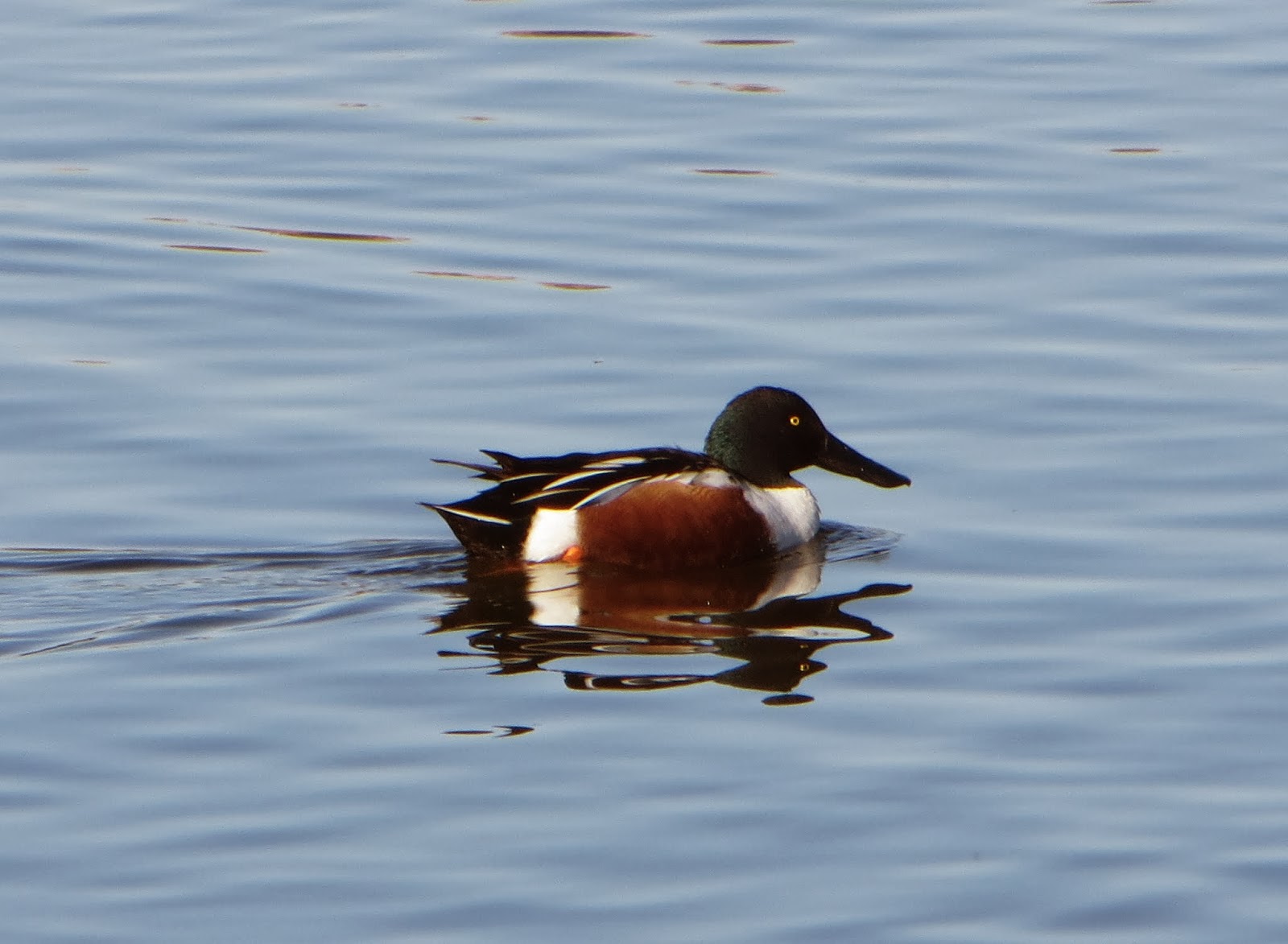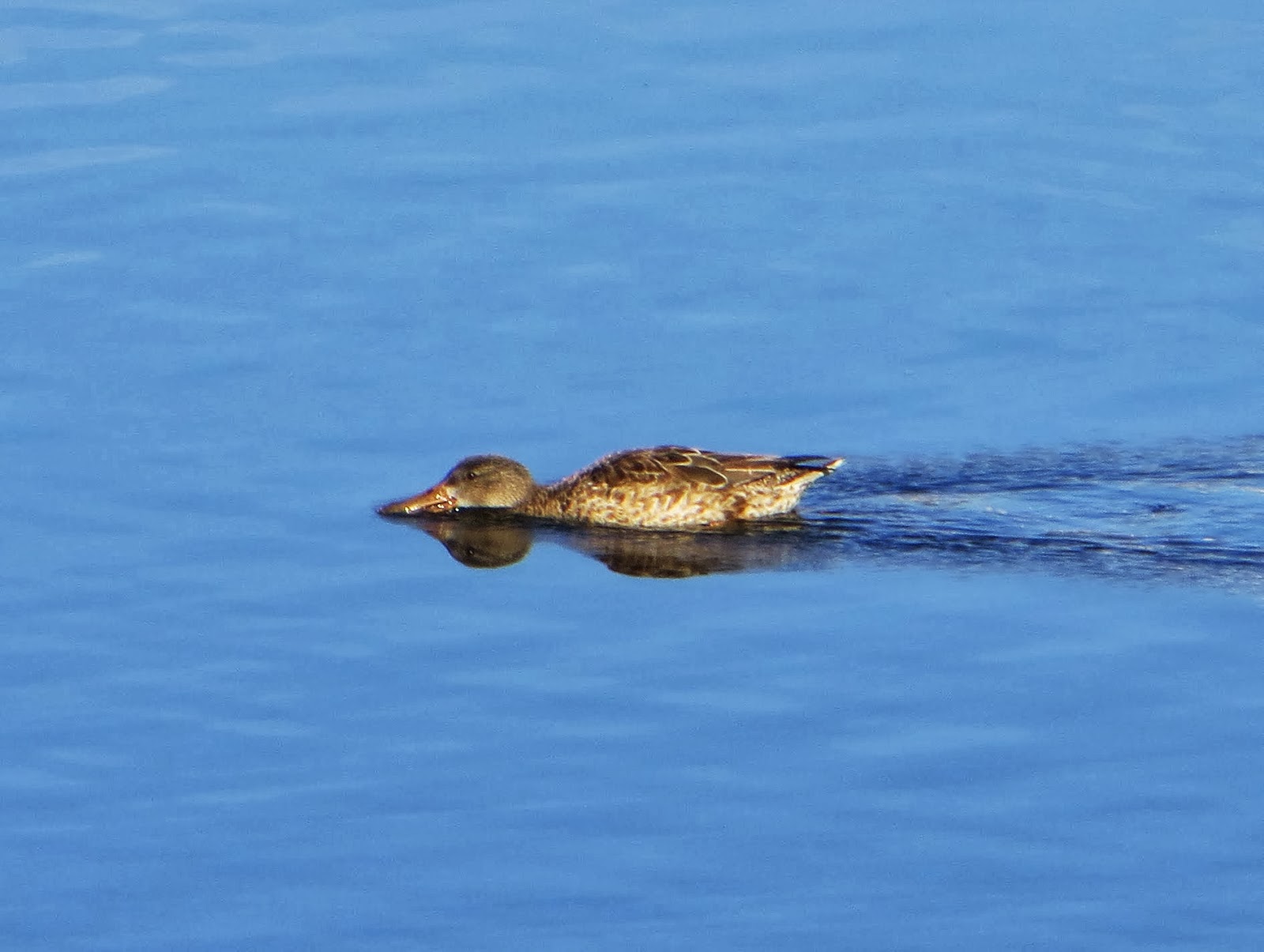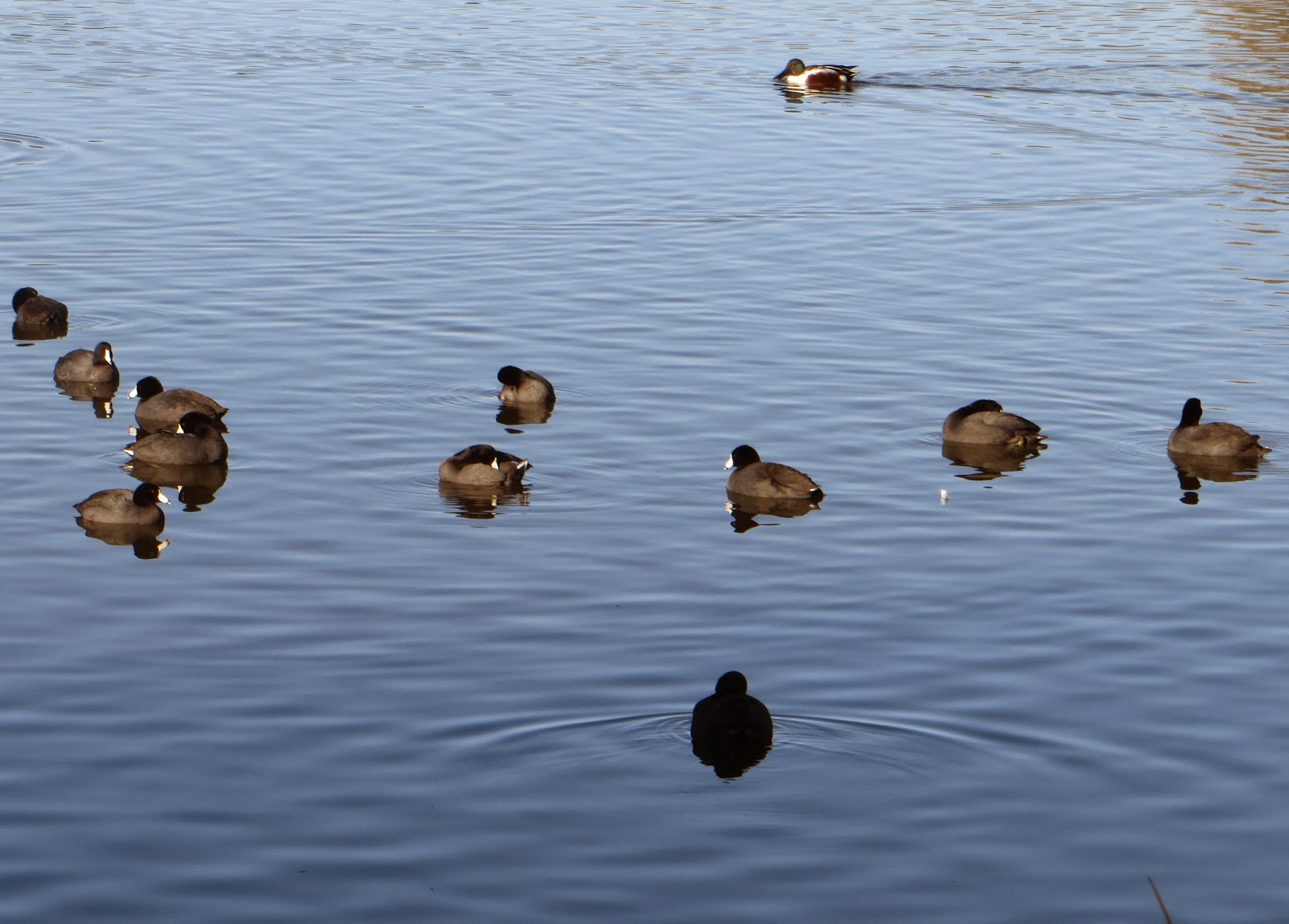 There were probably over two hundred northern shovelers at the lagoon. They were everywhere. Below is a female swimming and 'shoveling' with its bill.