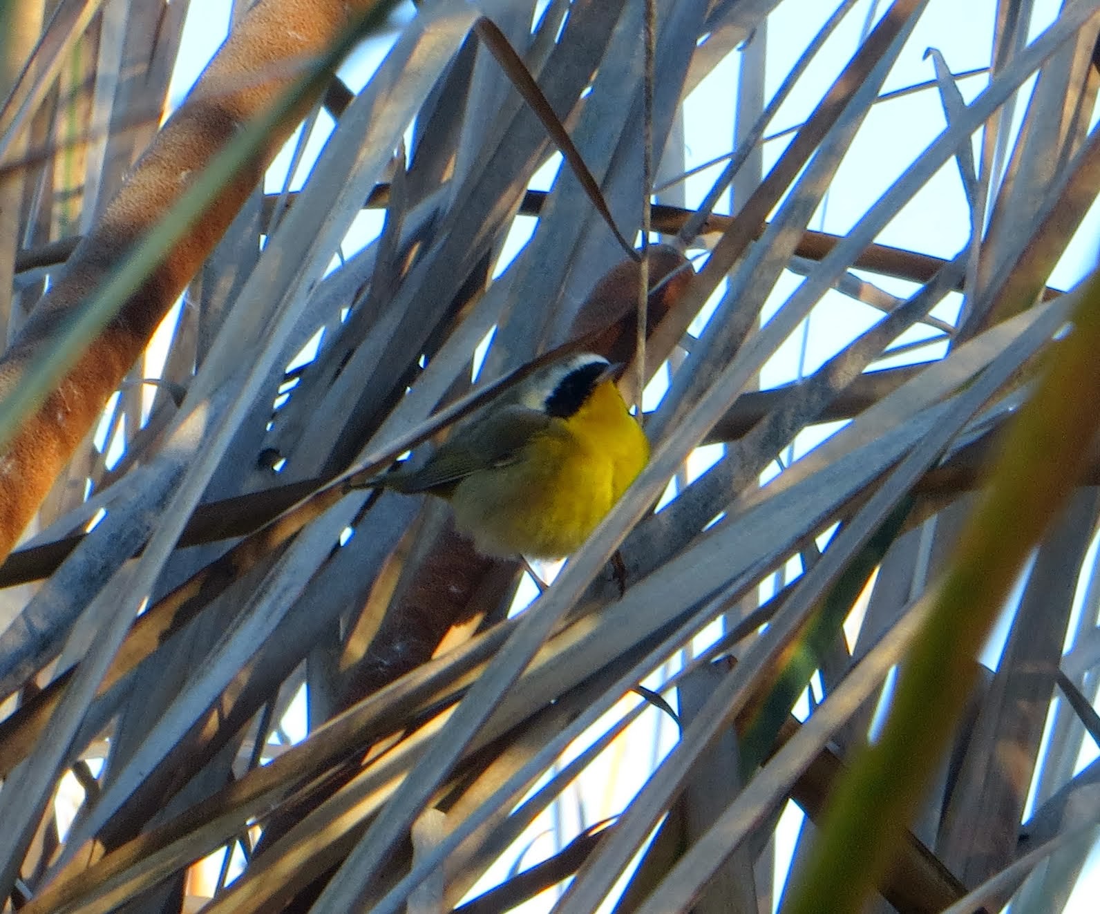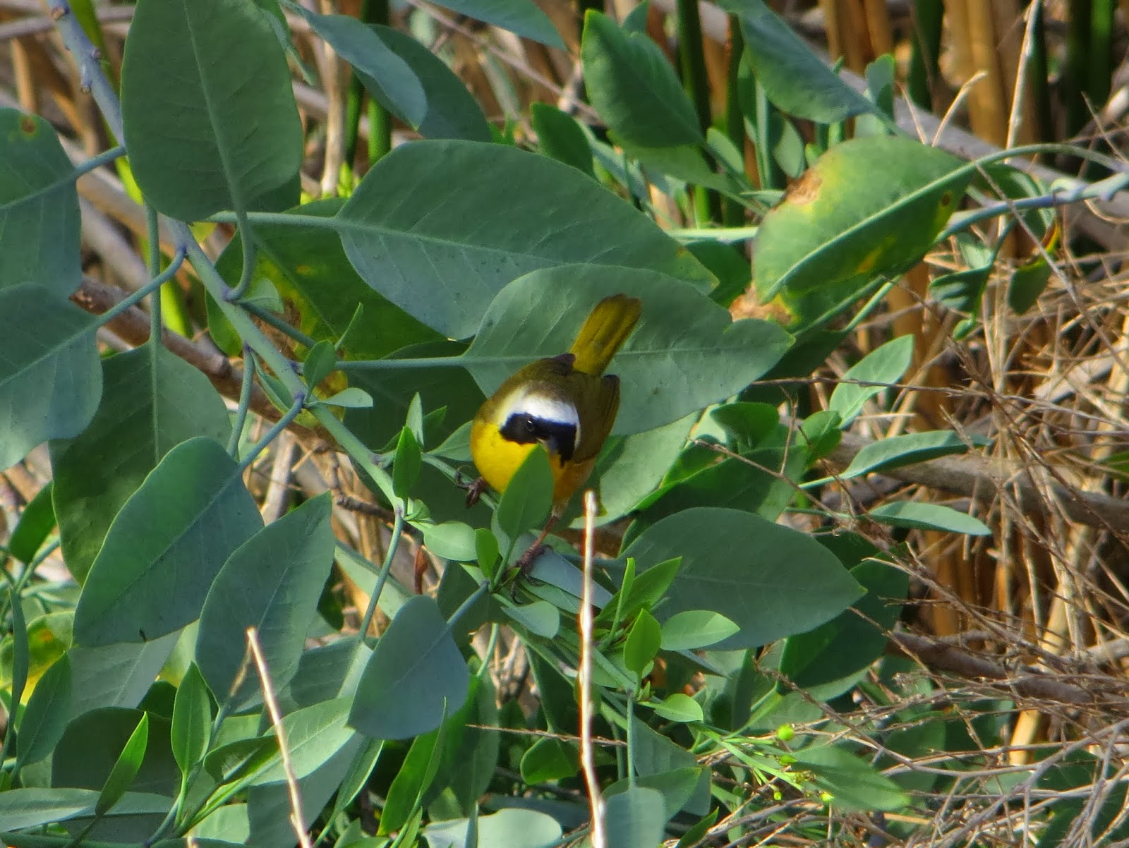 They were several common yellowthroats flitting around through the reeds and bushes. Below is a photo of one of them.