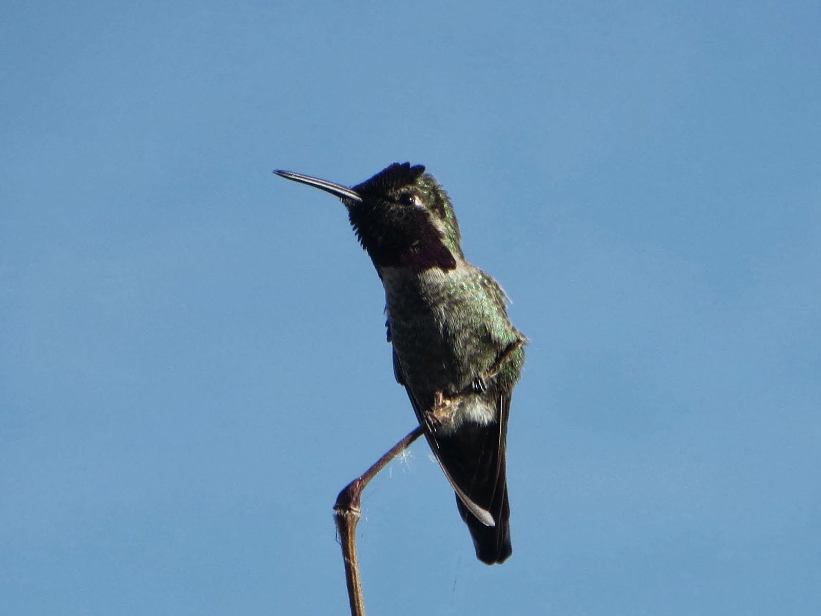 There were many Anna's hummingbirds flying around. They were chasing each other all over. One of them, a male, came up close to me and sang its squeaky song. Below is a photo of it.