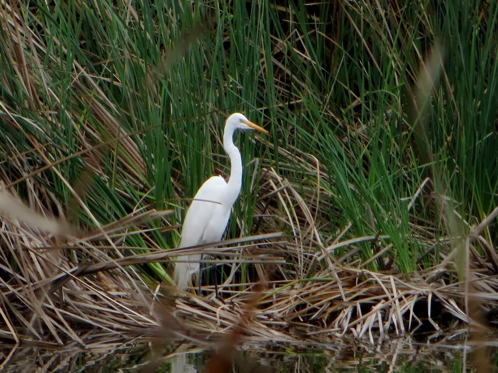 There were a couple of great egrets around. There were more egrets yesterday than there have been the last few months, probably because the water level was lower. Below are two great egrets.