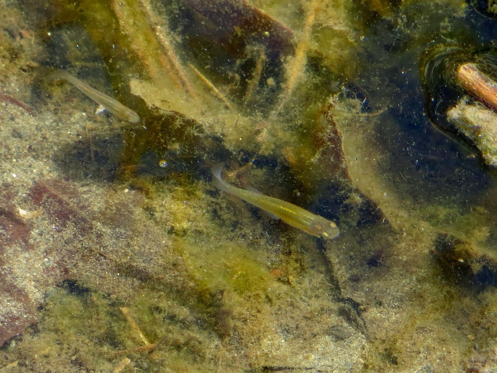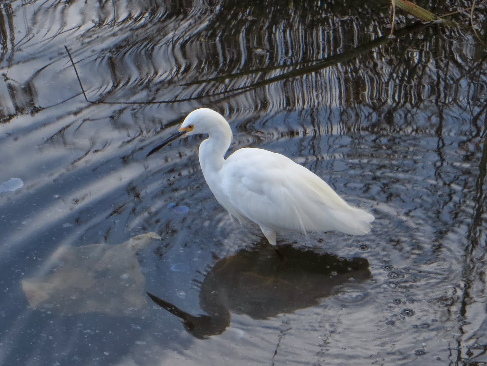 One of the first birds we saw was a snowy egret hunting for fish. Below are two photos. The first is of the snowy egret, and the second is of some small fish in shallow water.