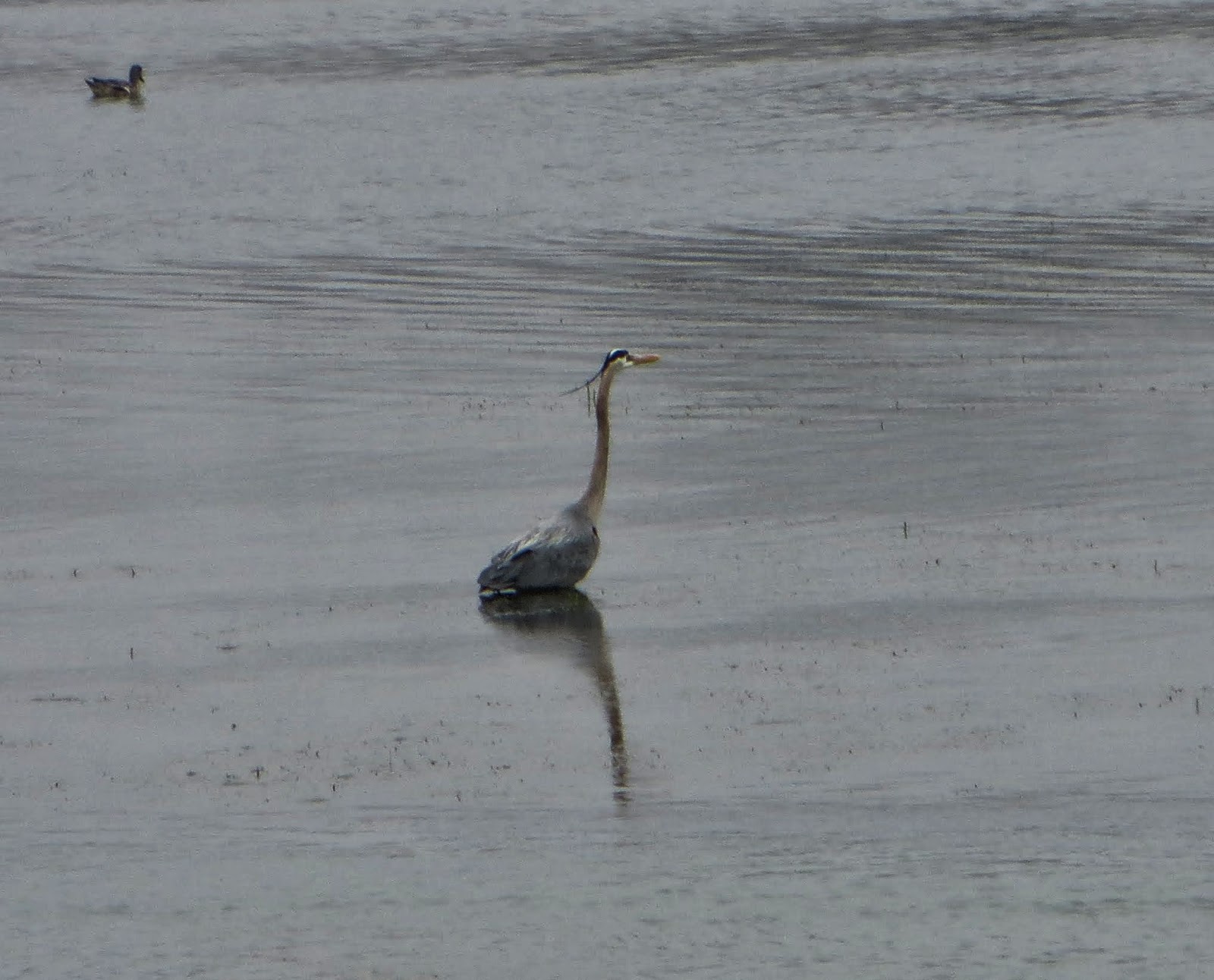 There were quite a few herons and egrets around. There was one black-crowned night-heron in a tree and several great blue herons, great egrets, and snowy egrets. Below are two photos. The first is of a great blue heron, and the second is of a great egret and a great blue heron.