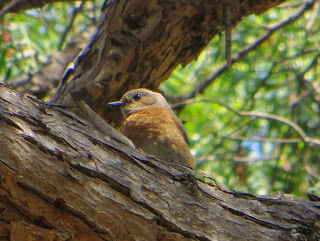 Every time we go to Guajome, we always see Western Bluebirds in the trees or fields near the entrance to the park. However, we didn't see any this time until the very end, when we saw one flying between the trees. It finally stopped and sat on a branch, letting me take a photo. Below is the bluebird (a female).