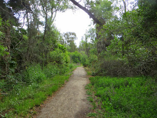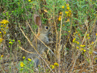 There were a lot of Desert Cottontails at Guajome. There were groups of them grazing on grass, and some in the bushes. Below is one of them that was near the trail, but completely ignored us as it nibbled on a plant.
