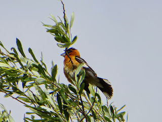 There was a surprising number of Black-headed Grosbeaks. I don't think that we had seen them at Guajome before. We saw at least four of them, both males and females. They very bright and beautiful in their spring plumage. Below is a photo of a male grosbeak, showing its bright orange feathers and black and white tail.