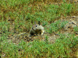 We saw a couple of Say's Phoebes. The one below was hunting for insects on the ground amid a crowd of squirrels (the squirrels had moved when I took the photo, however).