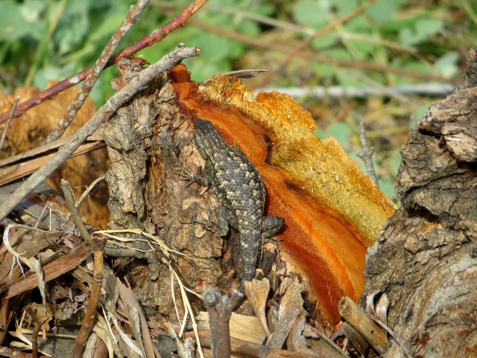 There were a few lizards here and there, jumping around in the bushes (they can jump pretty high). Below is a photo of a Western Fence-Lizard.