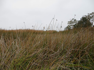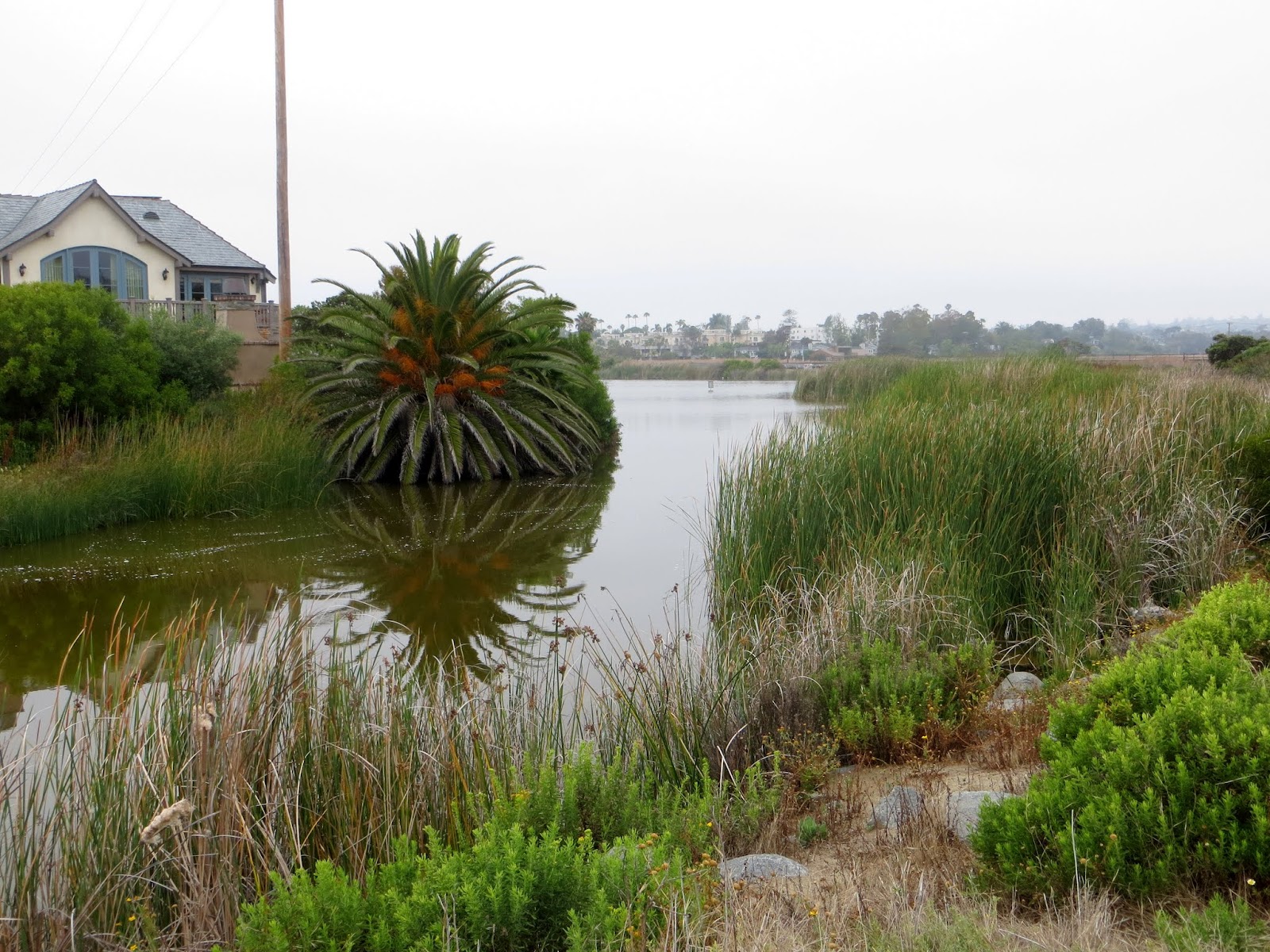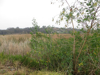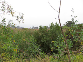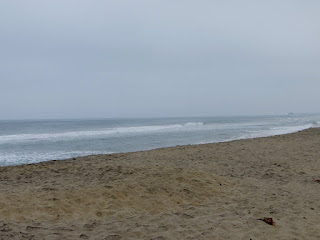 We stopped by the beach. Unfortunately, there were hardly any birds there, beside crows. We didn't even see a single shorebird. The water in the lagoon near the beach didn't look very good; it was very brown and cloudy. There may be an algal bloom soon. Below are two photos of the beach, and one of the lagoon.