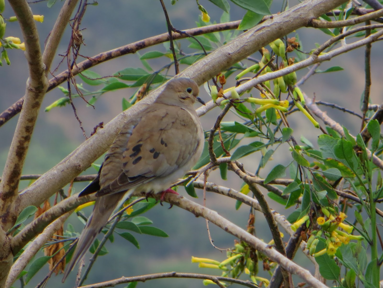 Whenever we stop at the end of the little side road where the Killdeer ditch is, there always seems to be a Mourning Dove sitting very still in the same tree, trying to be invisible. Below is a photo of the Mourning Dove.