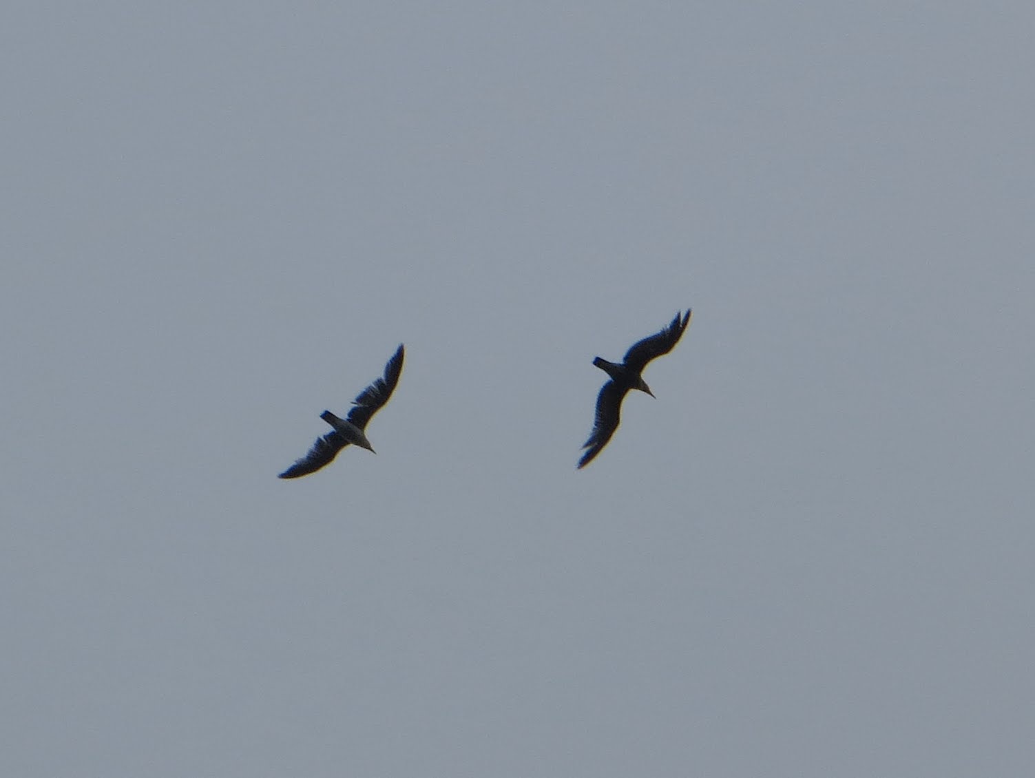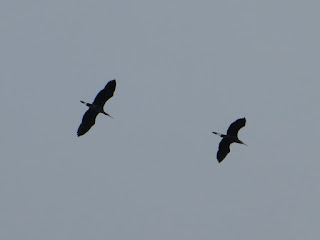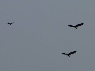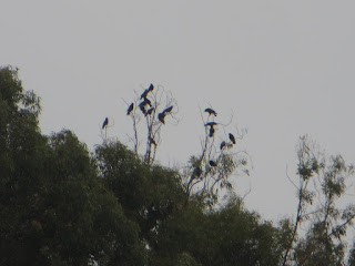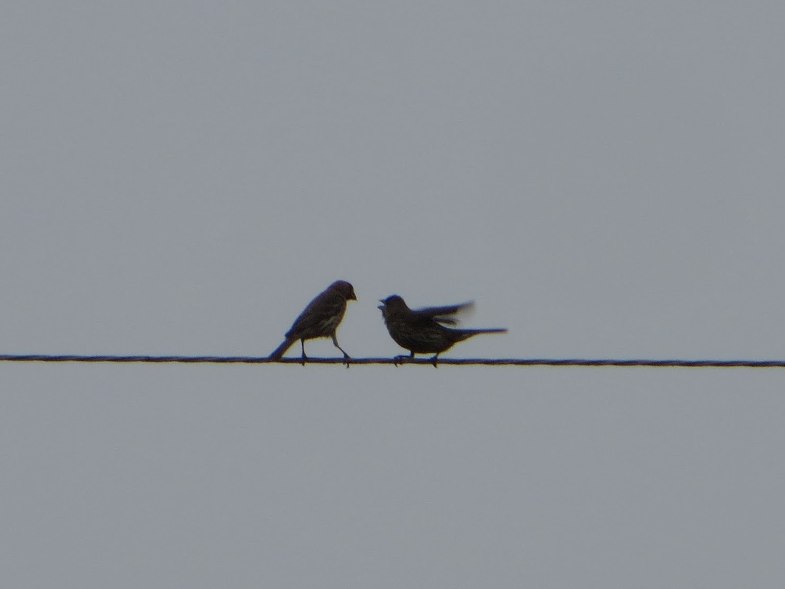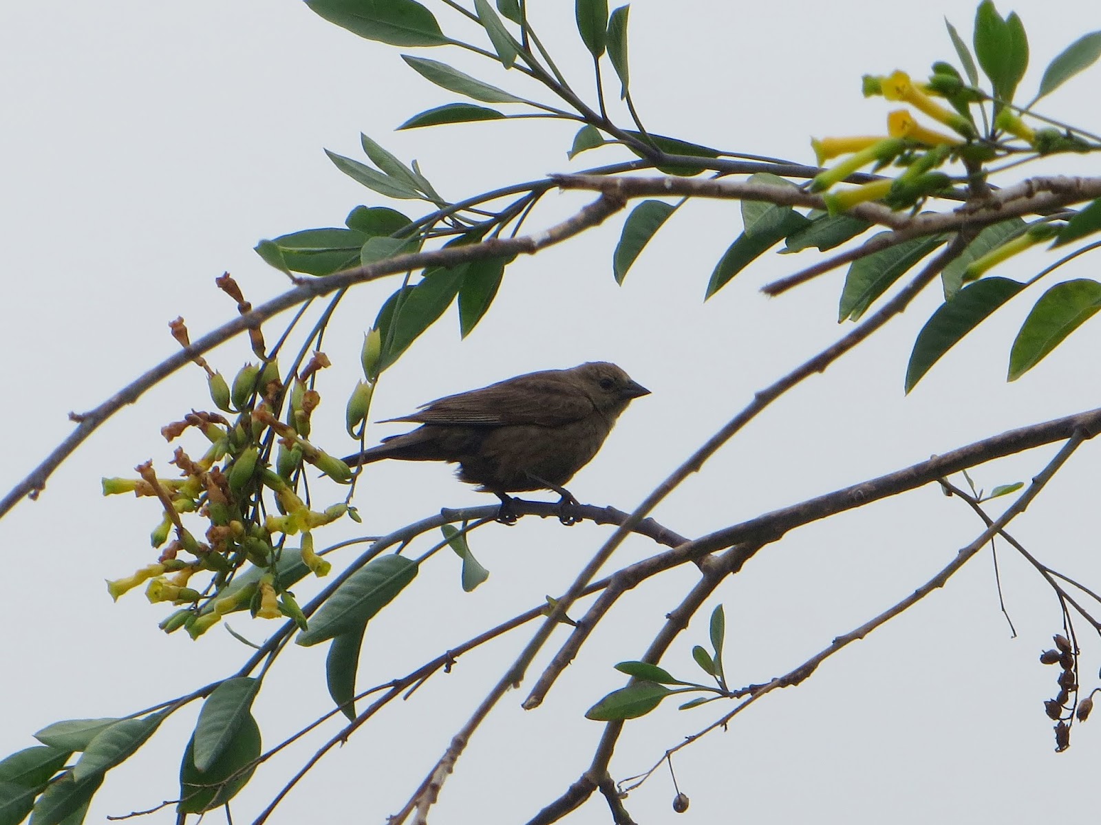 A single Brewer's Blackbird flew down to perch in a tree for about a minute just as we were about to leave. Then it took off. It gave me just enough time to take a photo. Below is the blackbird (it's a female; notice the uniformly brown color without any streaks).