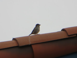 There were quite a few House Sparrows in their usual spot in a parking lot, flying in and out of their nests under the tiles of the roofs. Below is a male House Sparrow.