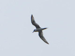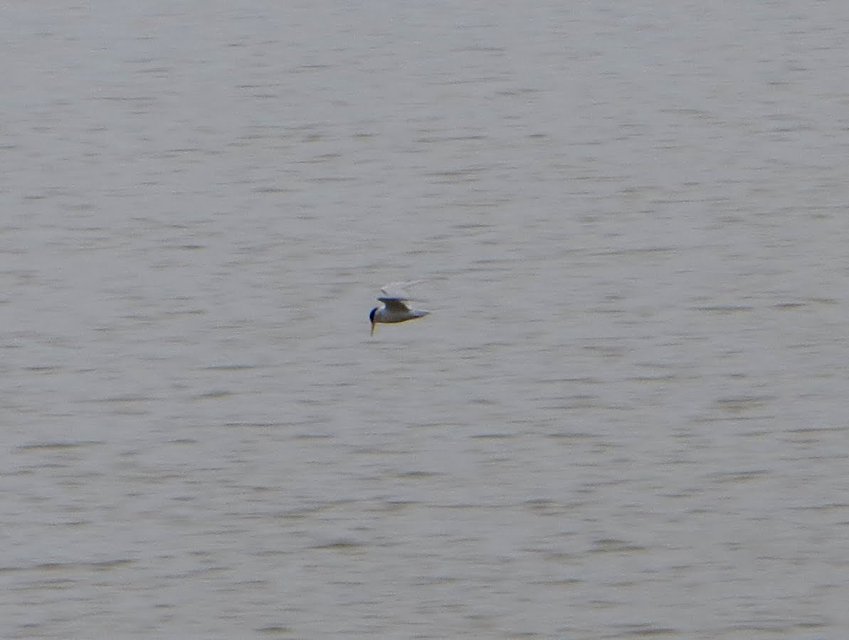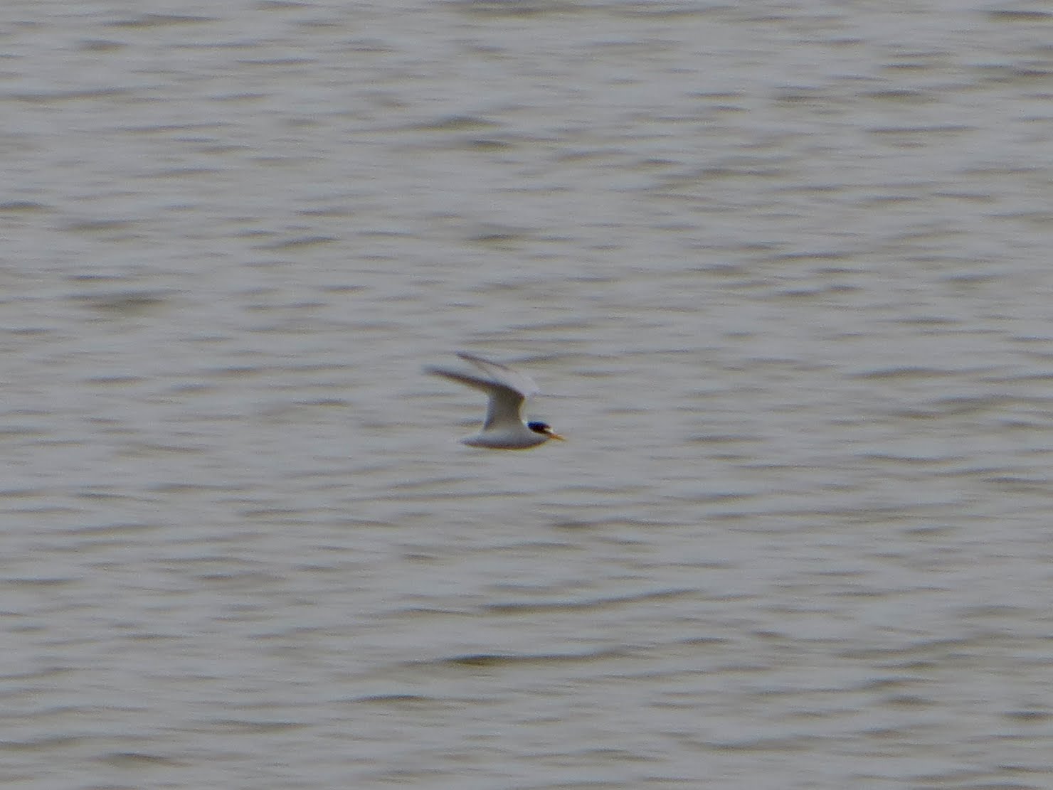 As I mentioned sort of near the beginning of this post, there were a lot of Least Terns around. Least Terns, for me, are very difficult to photograph. They are very quick and very small, and often blend in with cloudy skies and grayish-blue water (it always seems to be cloudy whenever I see Least Terns). I managed to take a few photos on Saturday. They weren't great, but they were much better than any I'd taken before. Below are three photos of Least Terns (notice the yellowish-orange bills).