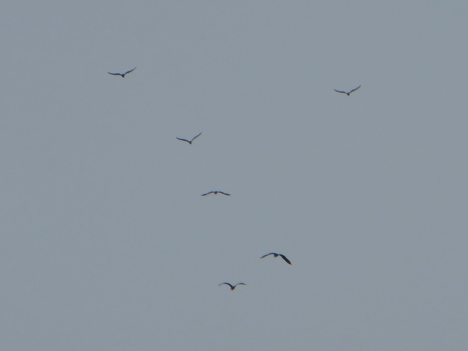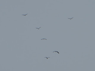 A couple of the Great Blue Herons we saw were flying together with four California Gulls. I'm not sure if the gulls were following the herons or the herons were following the gulls or they were all following each other, but they flew together as a little flock. Below are four photos of the flock. The first is of the gulls, the second is of the herons, and the last two are of both the gulls and herons.