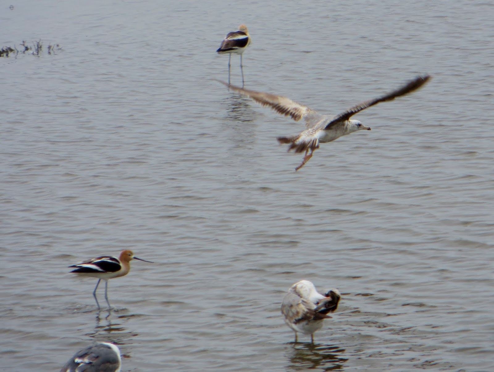 | American Avocets and Western Gulls |