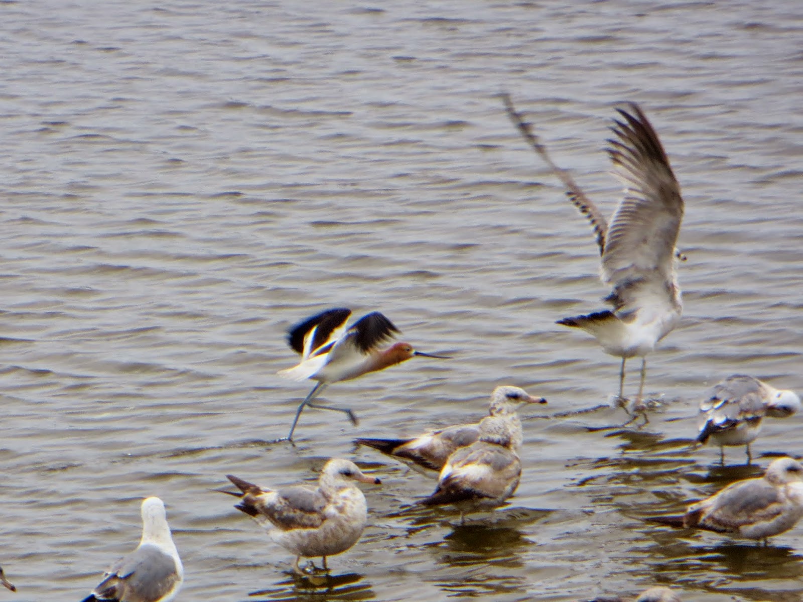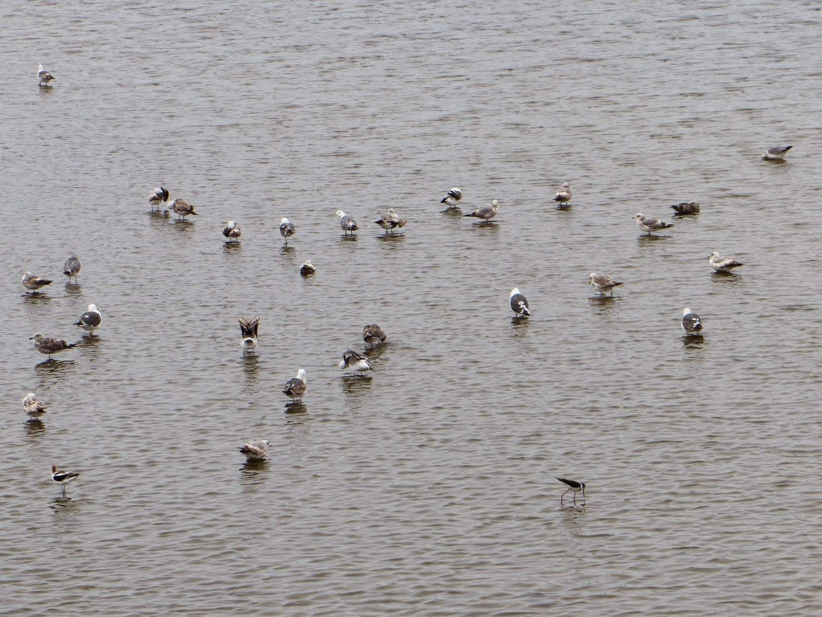 | Western Gulls, Black-necked Stilt, and American Avocet |