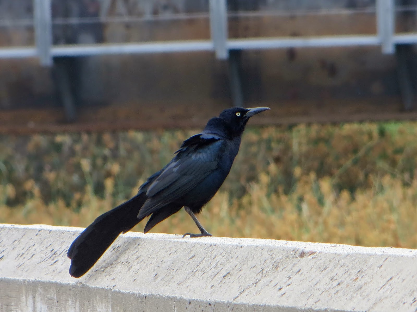 There were quite a few Great-tailed grackles. Male grackles look surprisingly large up close. They're a lot larger than females (a few inches longer and about twice the weight). Their iridescent plumage is also very beautiful up close. Below are two photos of male Great-tailed Grackles.