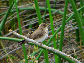 There were quite a few Northern Rough-winged Swallows, as well as some other swallows. Some of them may have had nests under a bridge. Below is one of the Northern Rough-winged Swallows perching in the reeds.