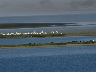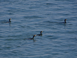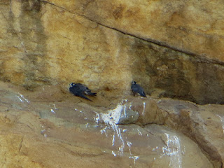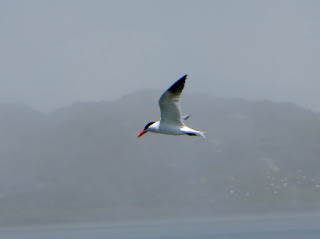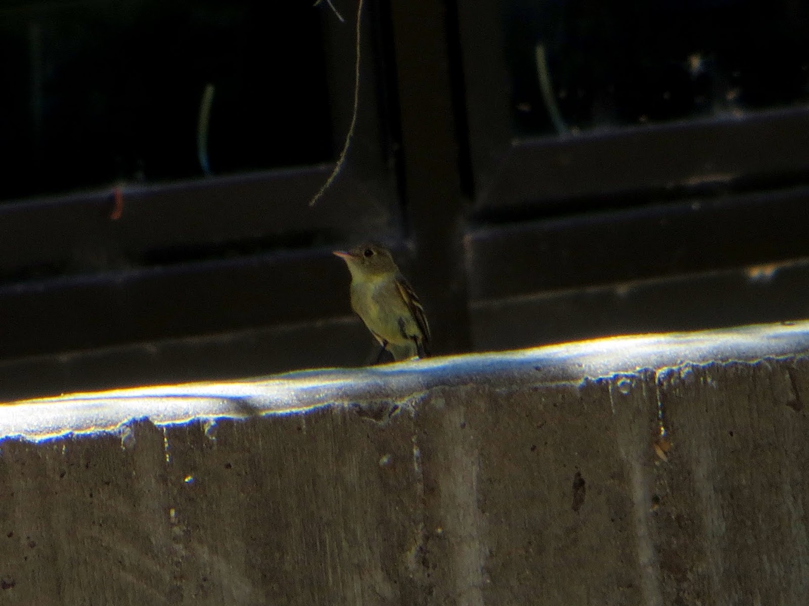 There also seemed to be a few Pacific-Slope Flycatchers everywhere we went, sitting up in trees or on buildings. We could often hear them calling (a high "seet" sound). There were a lot of them around Cal Poly in particular. Below is one of them sitting on a wall.