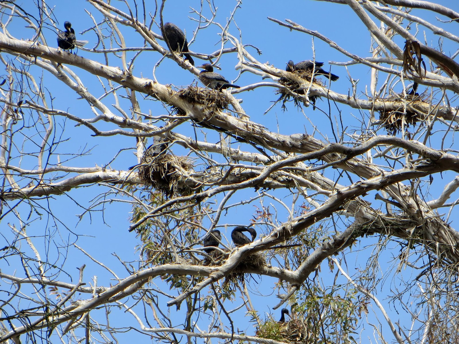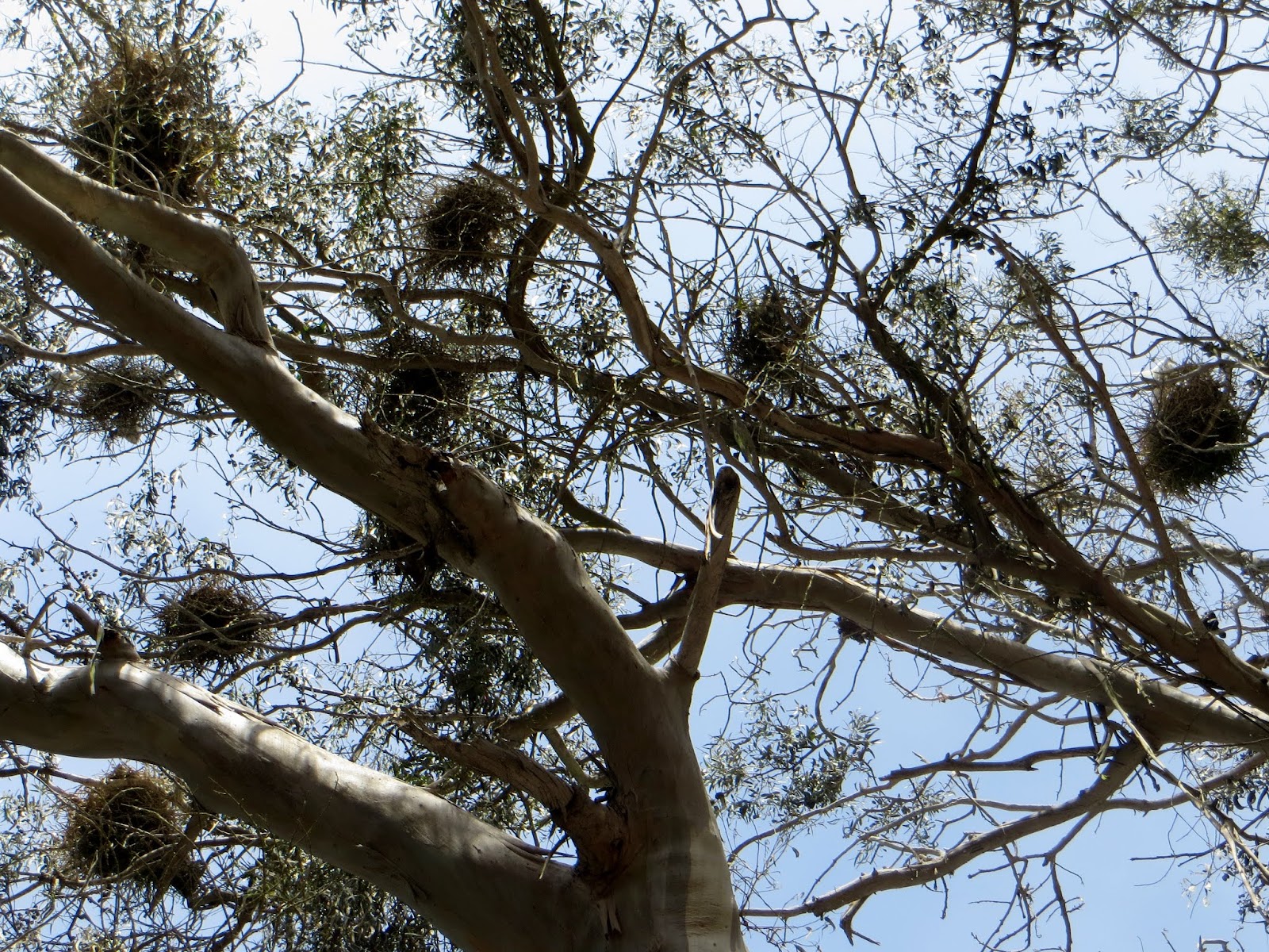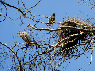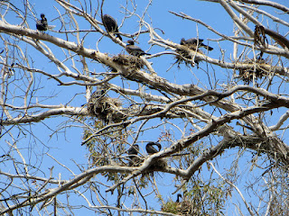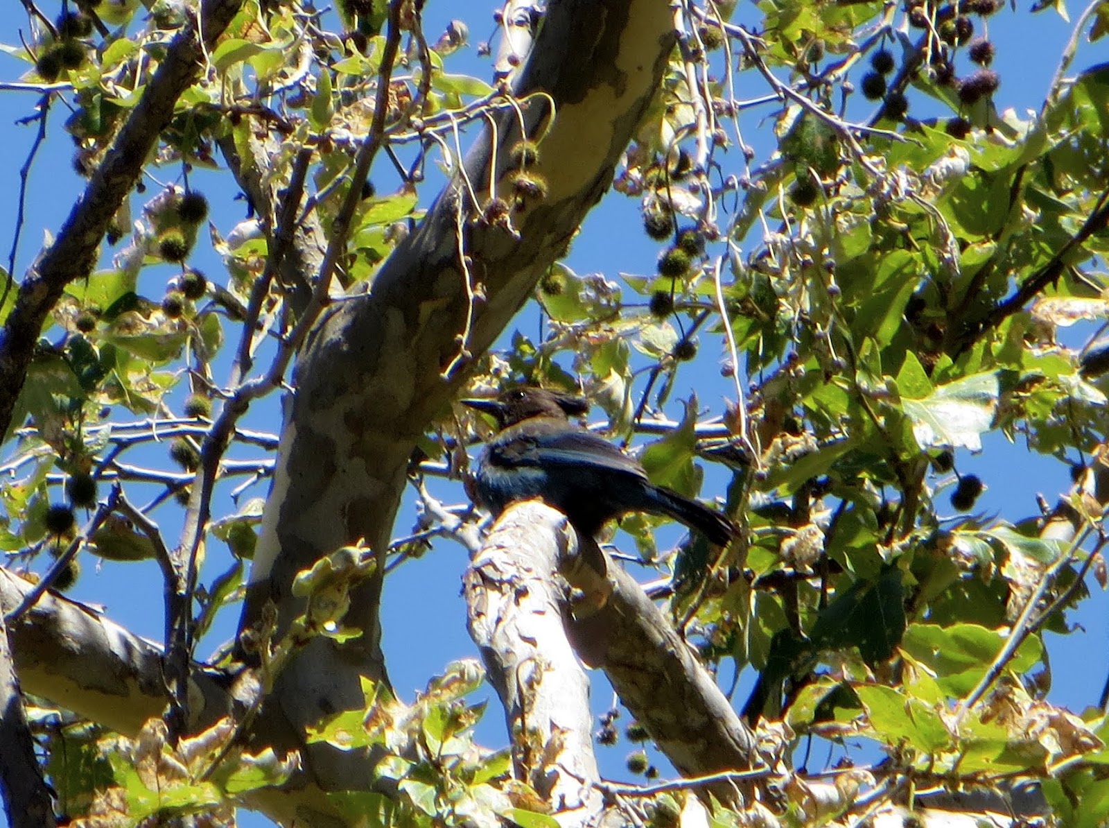 There were a few Steller's Jays high up in the trees making odd noises. A pair of American Kestrels were very upset at them; they must have had a nest nearby. Below is a Steller's Jay in a sycamore tree.