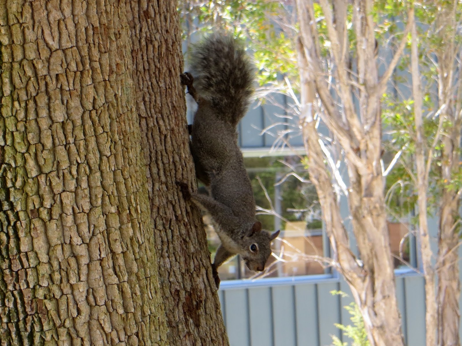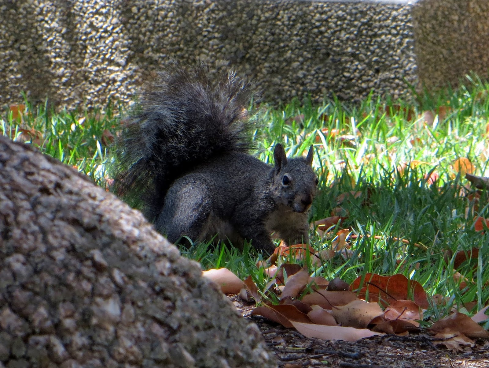 As we walked around the Cal Poly campus, we saw a Western Gray Squirrel. They're somewhat large squirrels with gray backs and pale bellies. They are currently threatened by habitat loss and competition with introduced species (mainly the Eastern Fox Squirrel). Below are two photos of the Western Gray Squirrel.