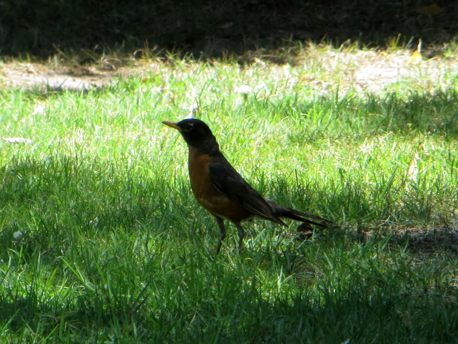 An unexpected bird we saw was an American Robin. It was running along the ground with some Dark-eyed Juncos on the Cal Poly campus. It was a male robin with very nice plumage. Below is a photo of the robin.