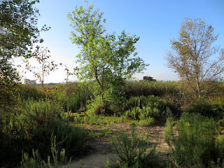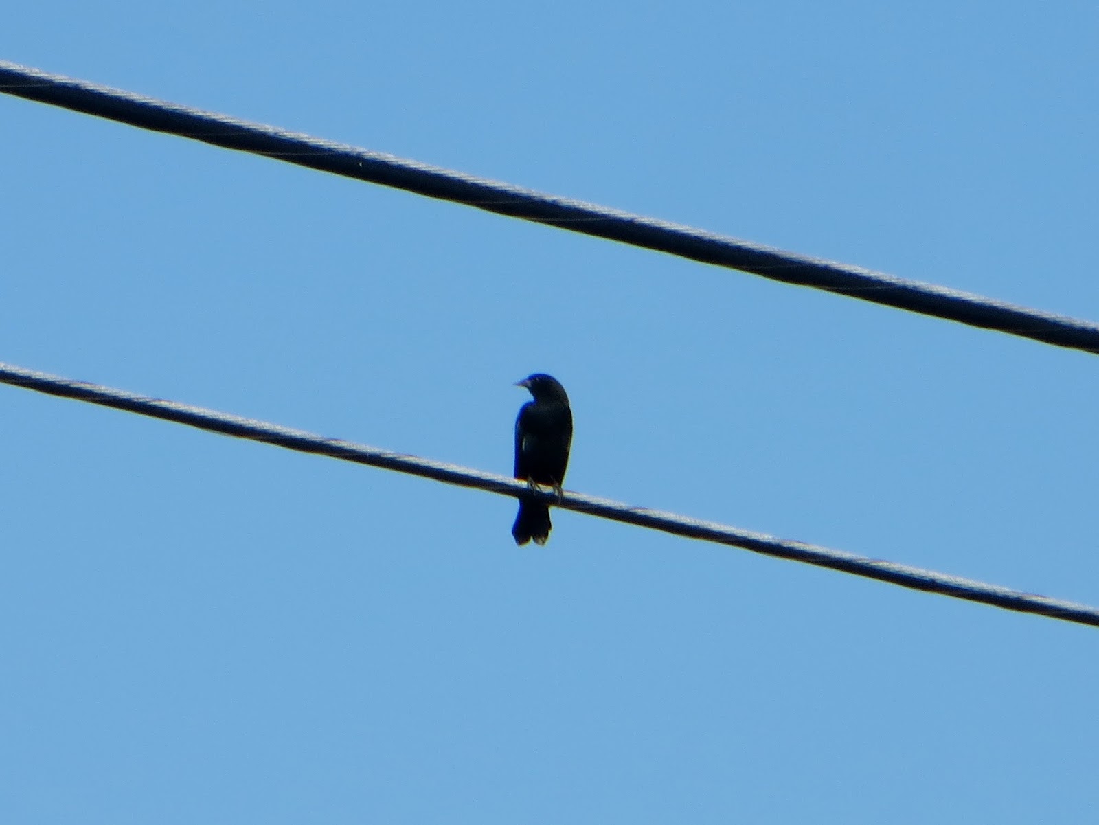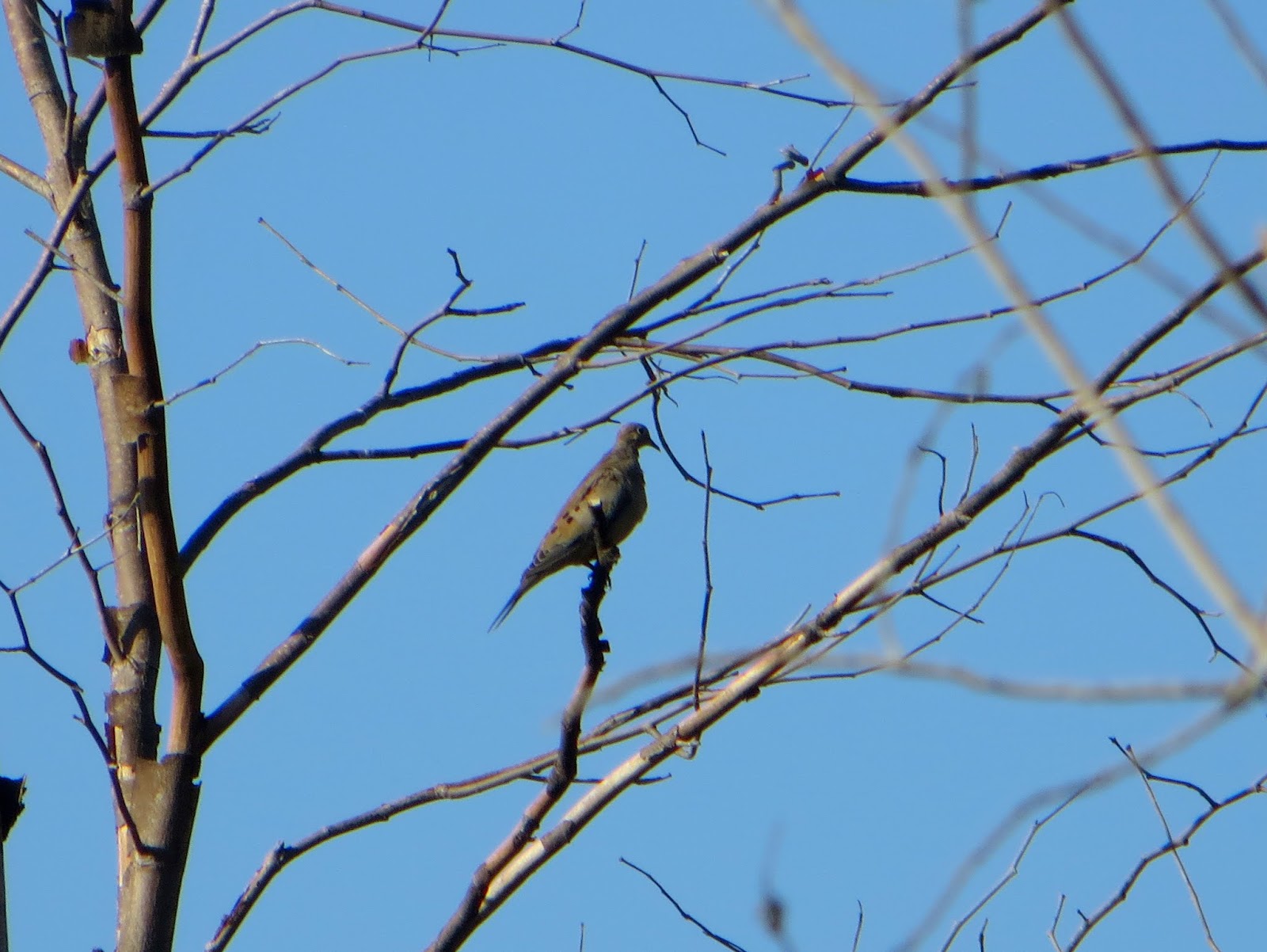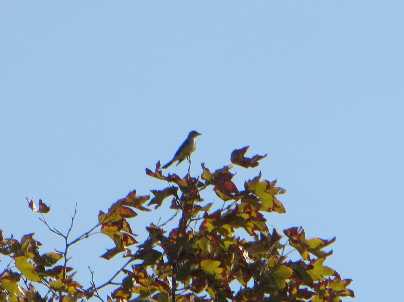 I also saw a couple of little flycatchers on Saturday, the Pacific-Slope Flycatcher and the Western Wood-Pewee. Because of their similar size and shape, they can be confused at a distance or in bad lighting. In good lighting, the Pacific-Slope Flycatcher is clearly very yellow, while the Western Wood-Pewee is grayish-brown (it does have a small bit of yellowish-gray on its belly). Below are two photos. The first is the Pacific-slope Flycatcher, and the second is the Western Wood-Pewee.