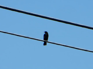 As I mentioned in my last post, a few winter birds have arrived very, very early. On Saturday, I spotted another new migrant in my yard, the Black-throated Gray Warbler. I've never seen them in my yard before, and I haven't seen them anywhere this early before. Like most of the birds in my yard, it came down to take a drink, though it didn't stay long. A couple of Mountain Chickadees also came by, though they didn't stay long enough for a photo. Although the chickadees don't migrate, I don't usually see them except in the winter. I'm still not sure why these birds have come here so early. Below are two photos of the Black-throated Gray Warbler in the jacaranda tree.