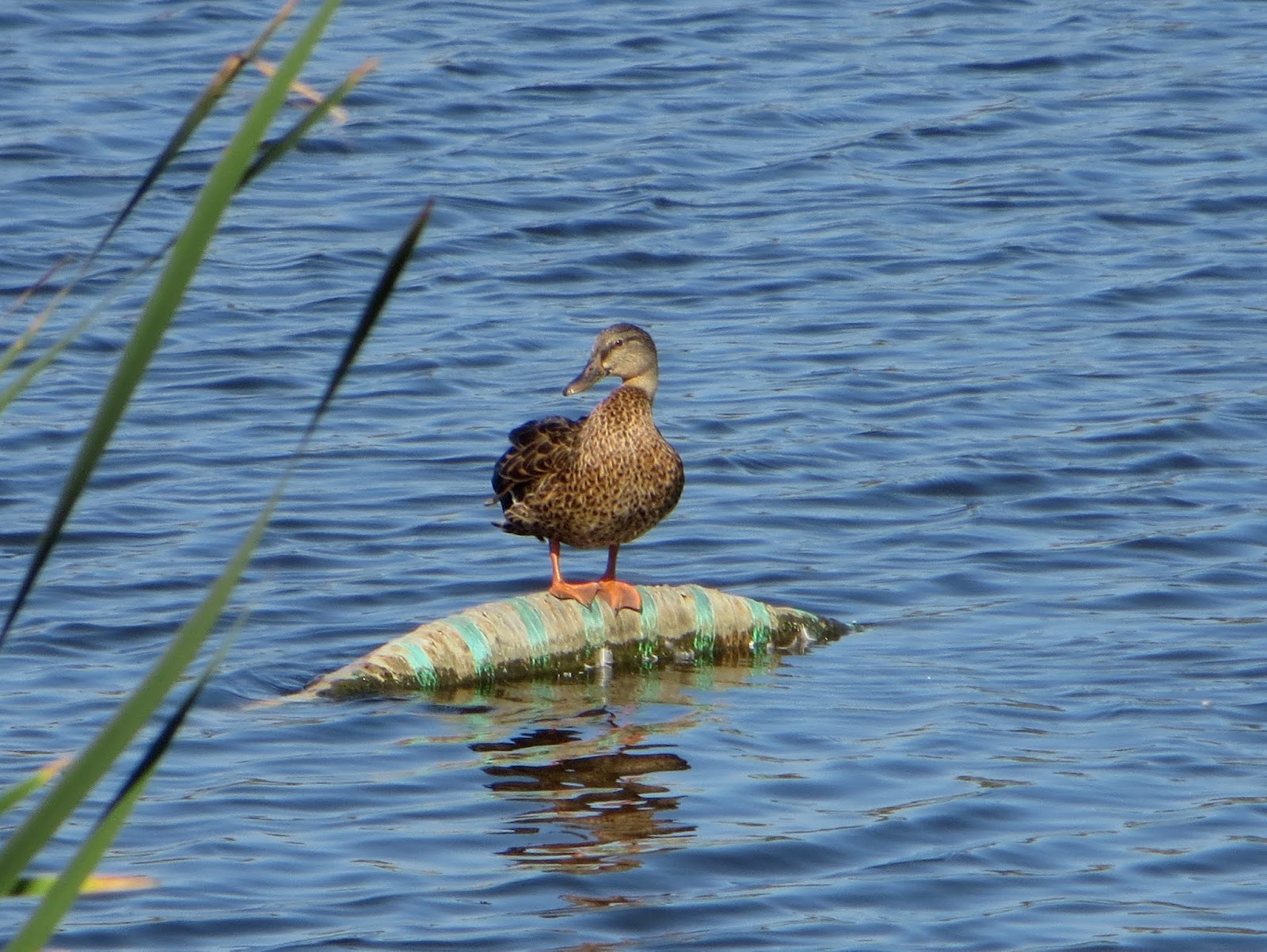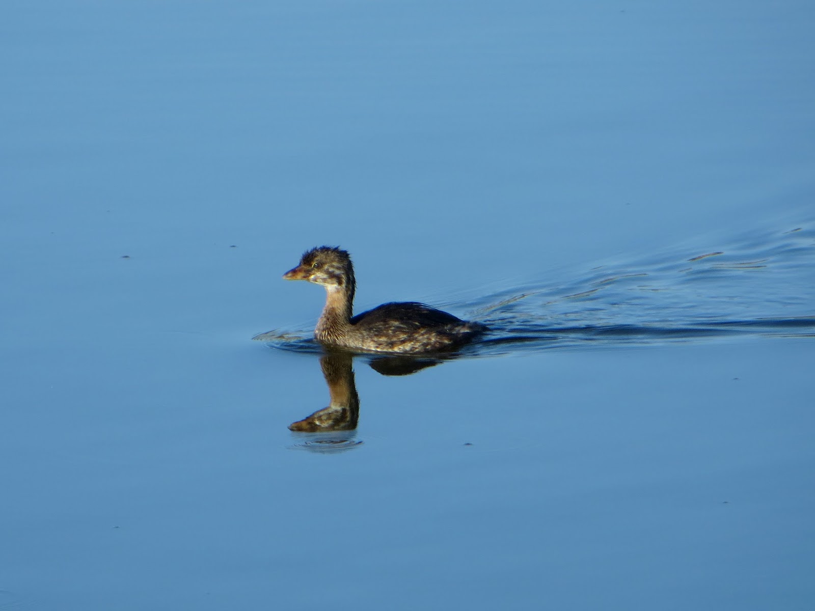 Most of the summer birds - the grosbeaks, tanagers, and orioles - are still here, and come down to the water from time to time. Below are three photos. The first is a female Black-headed Grosbeak. The second is of the same grosbeak, along with a female House Finch, both a male and a female Hooded Oriole, and a female House Sparrow. The third photo is of a female Western Tanager (which looks very similar to a female oriole, but is stockier with a thicker yellowish bill, shorter tail, and darker wings) and a California Towhee.